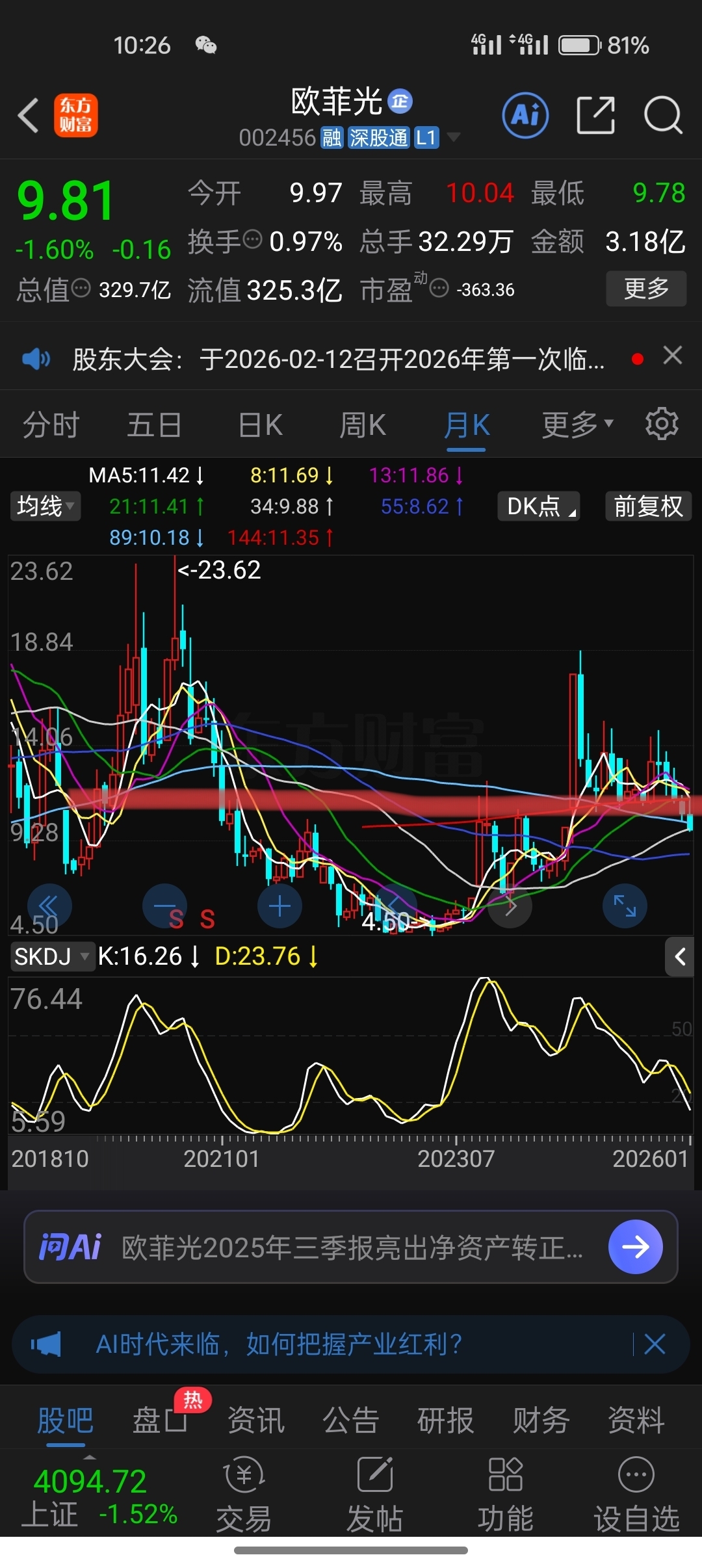 $欧菲光(SZ002456)$ 今天头肩底收不回劲线位就会奔八元去