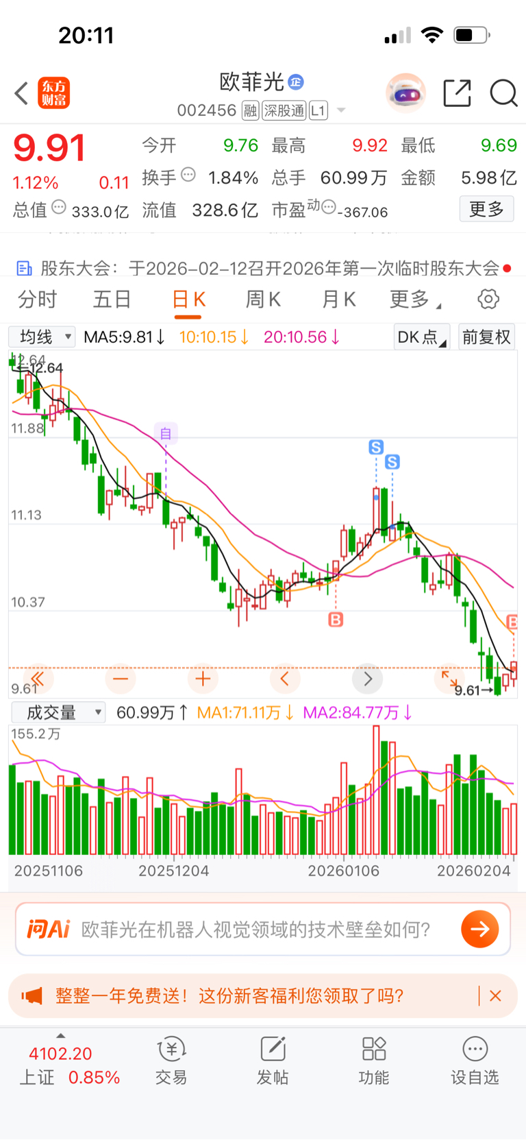 $欧菲光(SZ002456)$ 第二次抄底,这次能吃肉吗