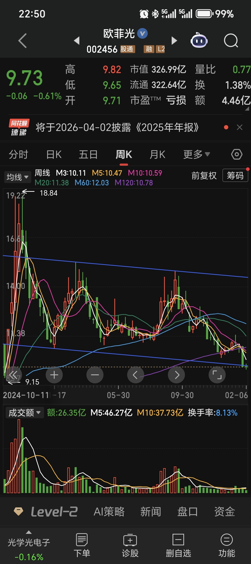 $欧菲光(SZ002456)$ 周线来看,区间已经跌破,这周被区间下沿压制,下周如果不能快速拉回,那么就有可能加速下跌