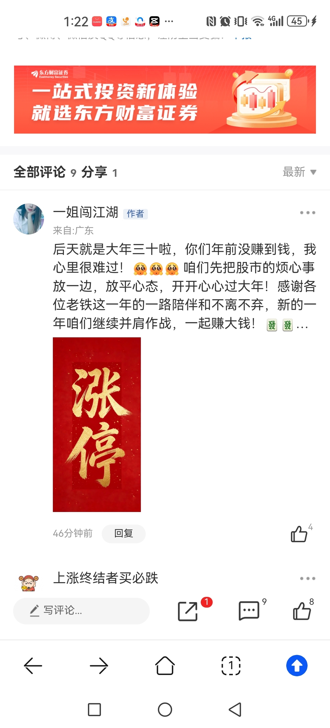 温馨提示: 1.根据《证券法》规定,禁止编造、传播虚假信息或者误导性信息,扰乱证券市场;2.用户在本社区发表的所有资料、言论等仅代表个人观点,与本网站立场无关,不对您构成任何投资建议。用户应基于自己的独立判断,自行决定证券投资并承担相应风险。《东方财富社区管理规定》