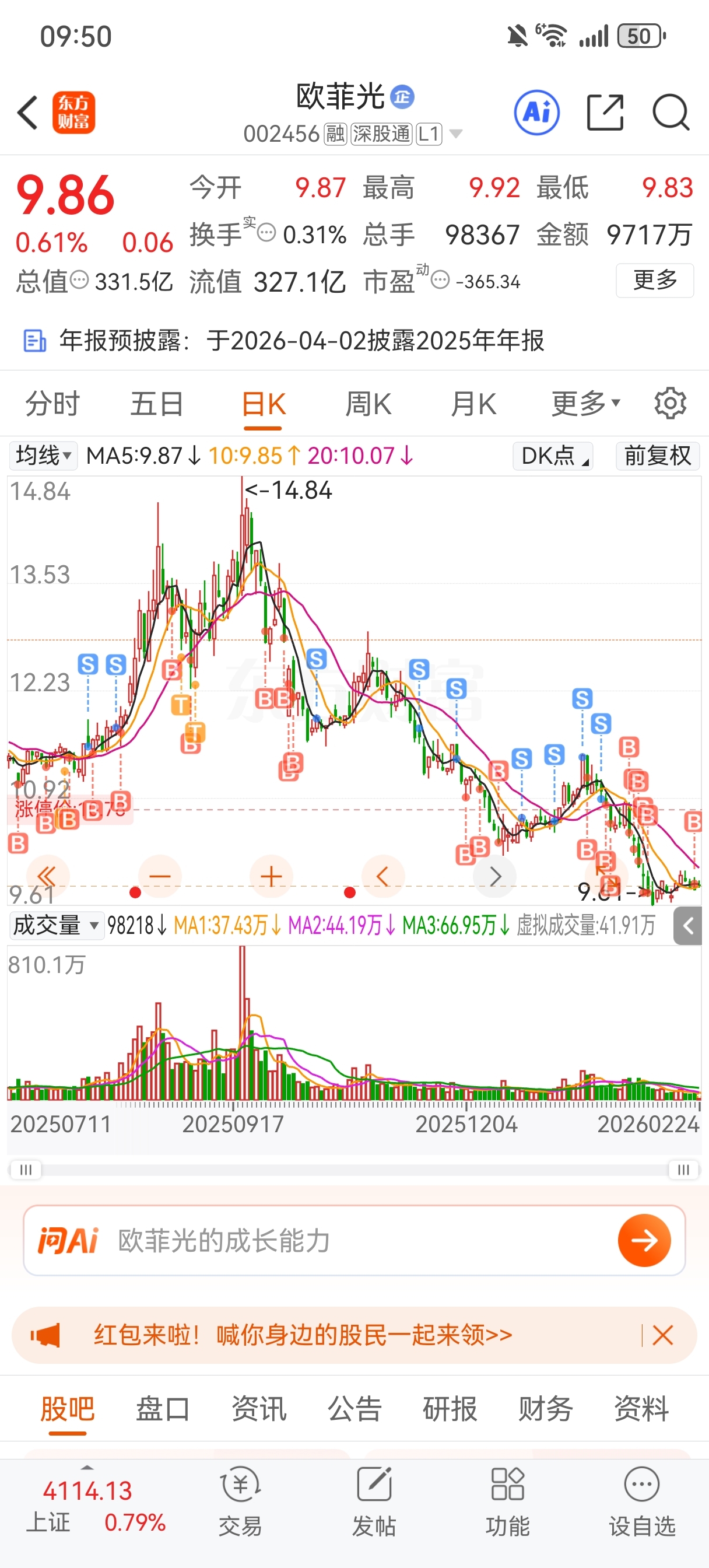 $欧菲光(SZ002456)$ 进来做长年韭菜王吧
