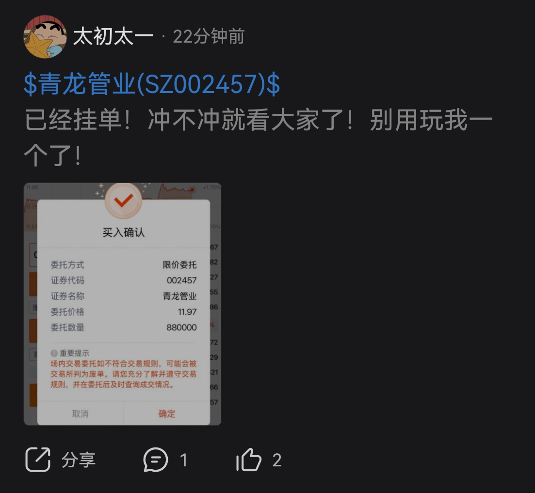 温馨提示: 1.根据《证券法》规定,禁止编造、传播虚假信息或者误导性信息,扰乱证券市场;2.用户在本社区发表的所有资料、言论等仅代表个人观点,与本网站立场无关,不对您构成任何投资建议。用户应基于自己的独立判断,自行决定证券投资并承担相应风险。《东方财富社区管理规定》