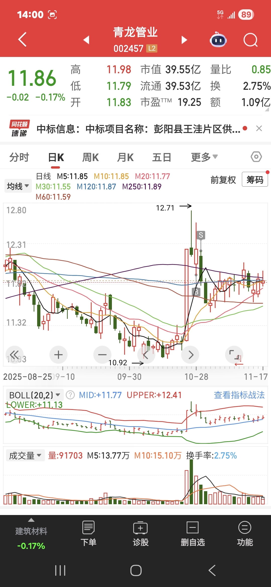 $青龙管业(SZ002457)$ 这大青虫半个月了还是这不死不活,上次我割肉后在别的股上又赚了30个点