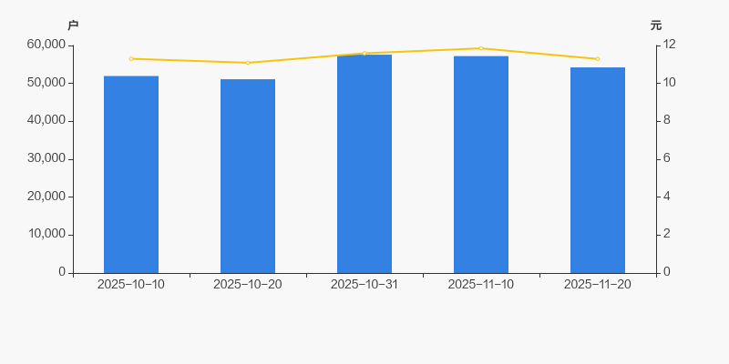 截至2025年11月20日,公司最新流通股本为3.33亿股。户均持有流通股数量由上期的5827股上升至6147股,户均流通市值6.94万元。