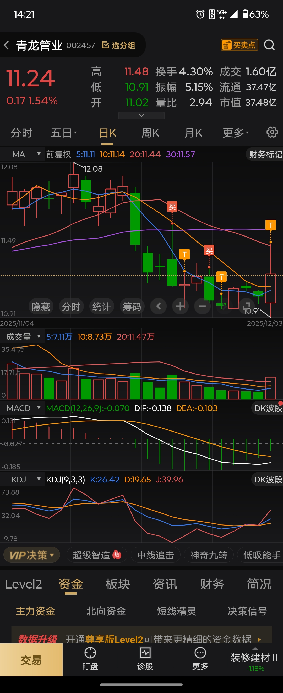 $青龙管业(SZ002457)$ 账户翻红走咯 剩100摆着看