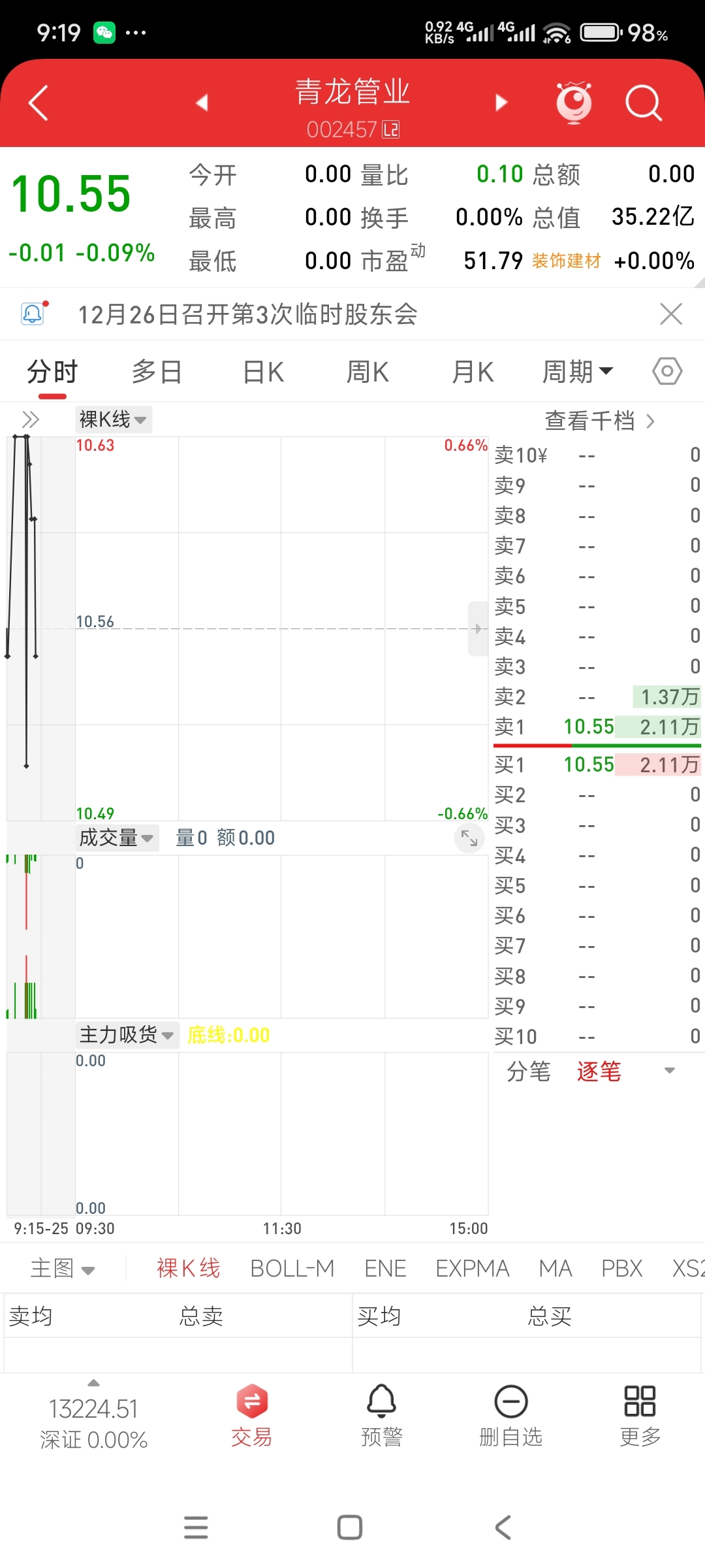 $青龙管业(SZ002457)$ 昨天有人说今天买不到了,我说了,随便买