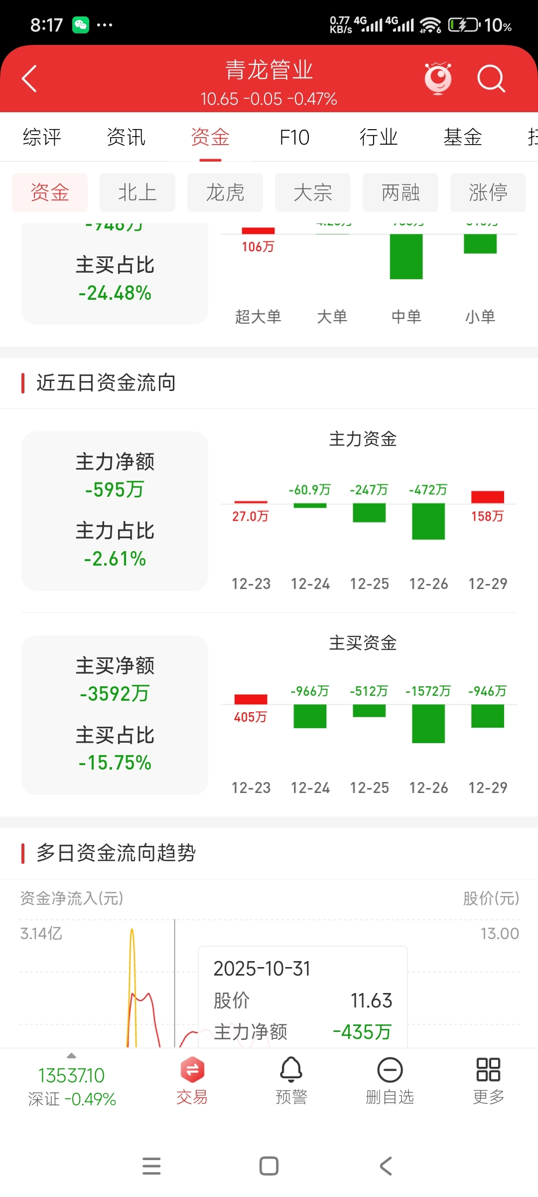 $青龙管业(SZ002457)$ 兄弟们,这货牛逼的地方在哪里,知道不,牛逼的不是股价没怎么跌,而是,就是股价没怎么跌,主力这几天却大量出货,光是今天,通达信显示主力今天又又又出了946万!!换算股价以10.7元计算等于88411股!!周五比今天还牛逼,跌了3分钱,主力出了1500万!!