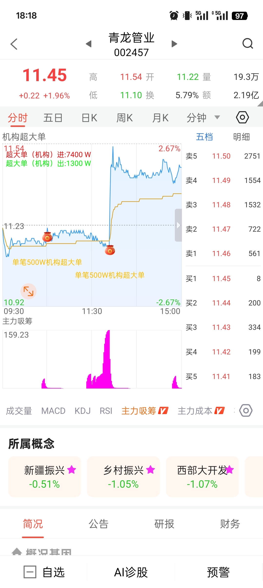 $青龙管业(SZ002457)$ 兄弟们别慌,主力在吸