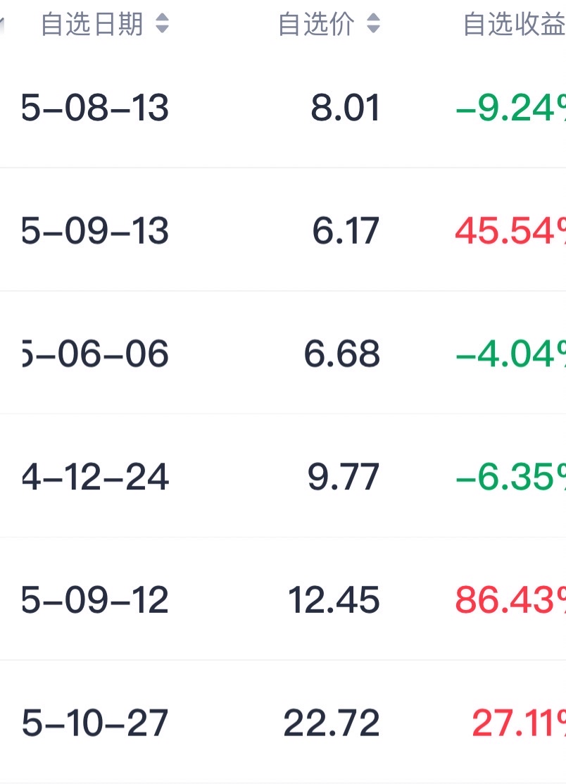 24年12月24日放到自选里,快一年了,一年你不但没涨,还跌了6.35%,你看看你旁边的几位,再看看你