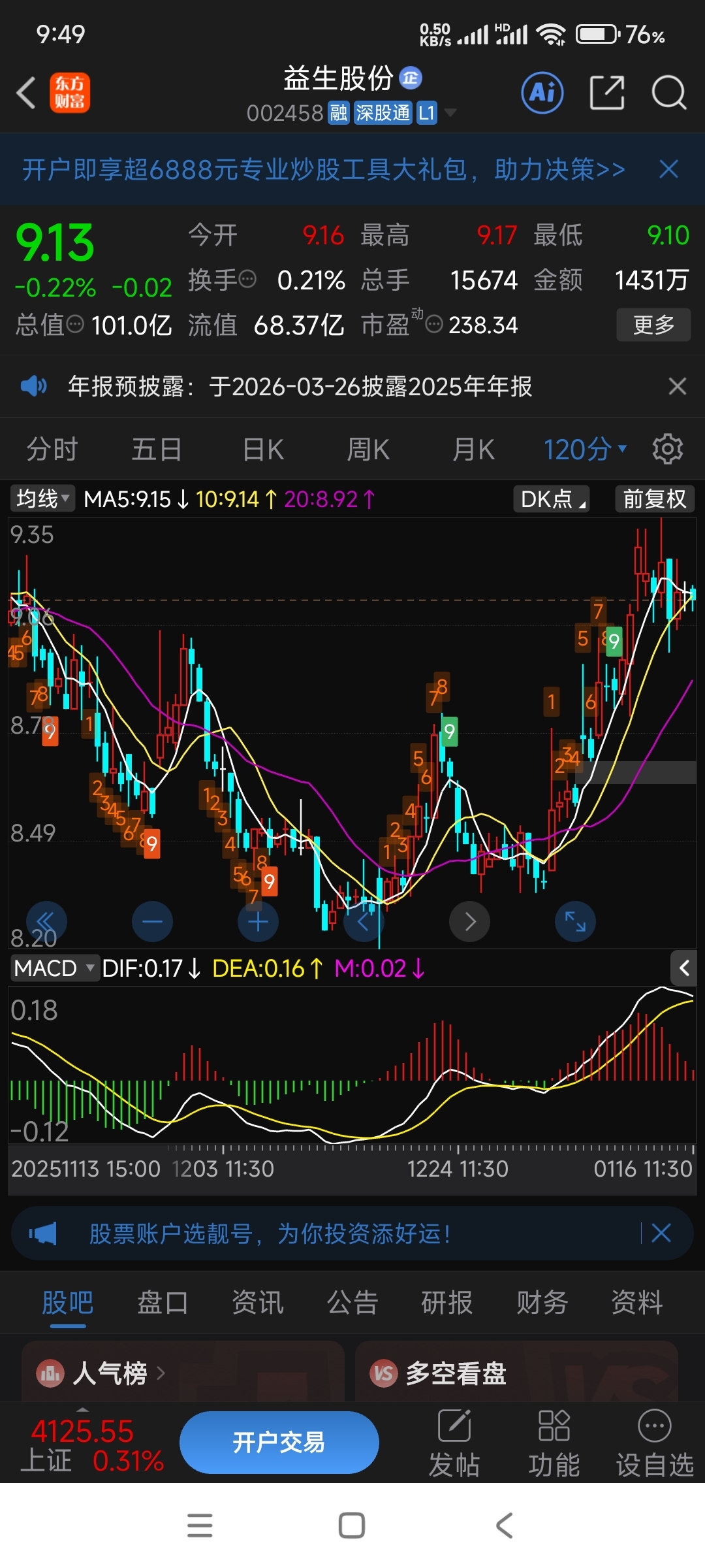$益生股份(SZ002458)$ 120分钟MACD,这行情看看就好