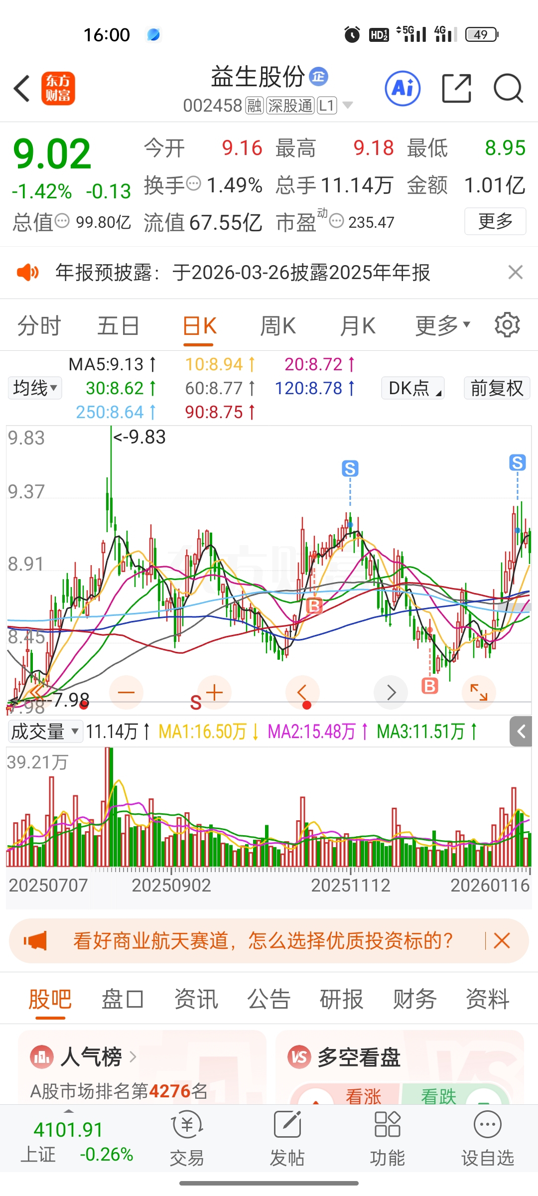 $益生股份(SZ002458)$ 我就喜欢这样,回调一下我再来。。