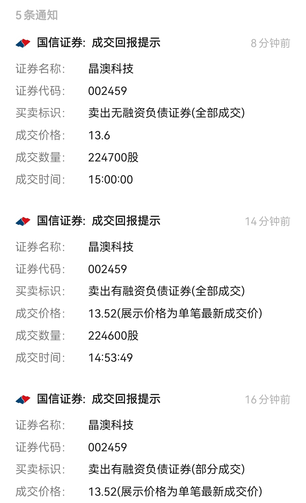 $晶澳科技(SZ002459)$ 最后尾盘剩下一半挂了52出,没想到竞价到了60,4500手全部出完,周末了风险太大,清仓啦,希望周一继续涨,跌的话我会卖回来