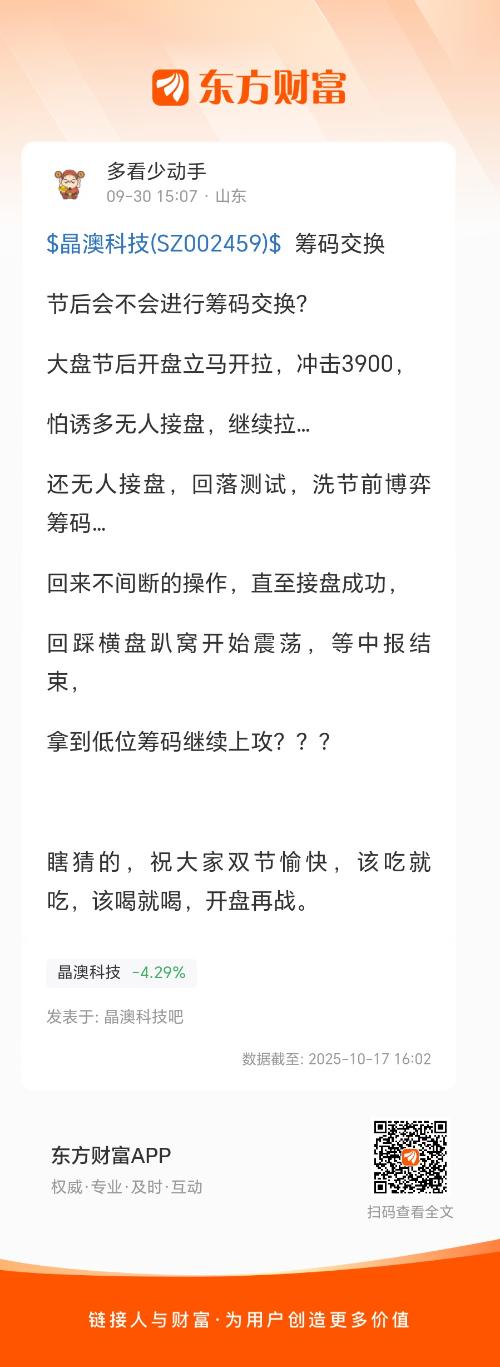 温馨提示: 1.根据《证券法》规定,禁止编造、传播虚假信息或者误导性信息,扰乱证券市场;2.用户在本社区发表的所有资料、言论等仅代表个人观点,与本网站立场无关,不对您构成任何投资建议。用户应基于自己的独立判断,自行决定证券投资并承担相应风险。《东方财富社区管理规定》