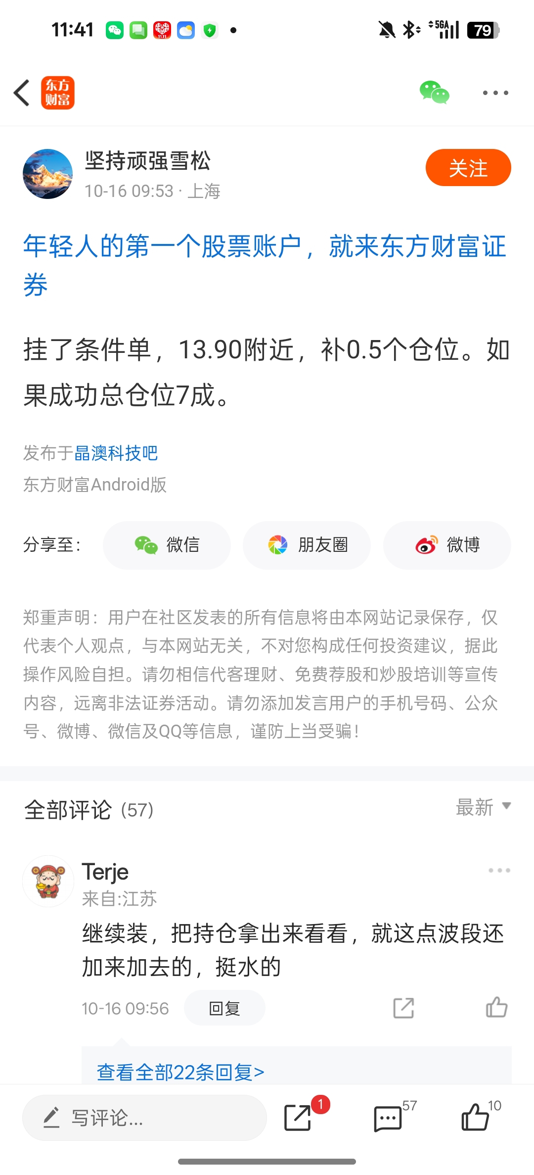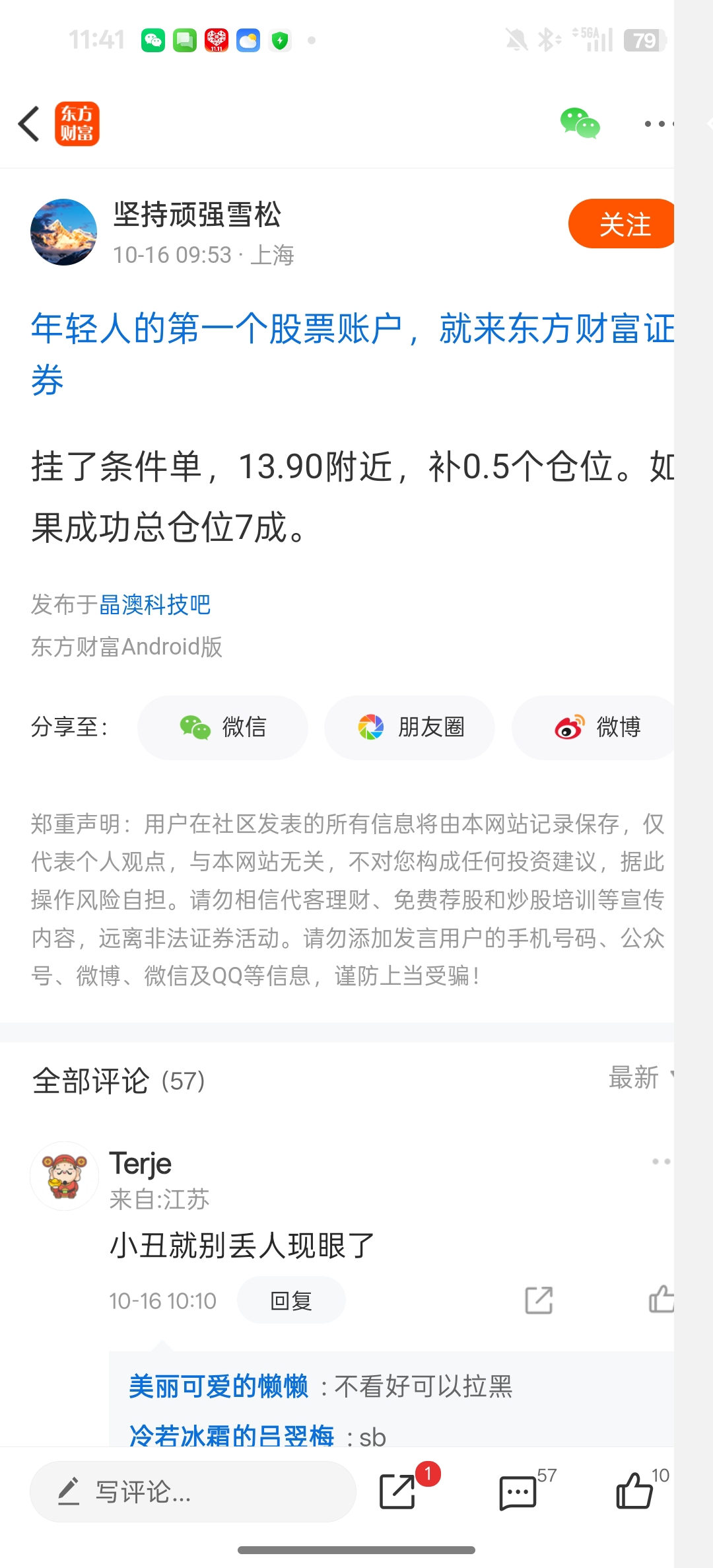 温馨提示: 1.根据《证券法》规定,禁止编造、传播虚假信息或者误导性信息,扰乱证券市场;2.用户在本社区发表的所有资料、言论等仅代表个人观点,与本网站立场无关,不对您构成任何投资建议。用户应基于自己的独立判断,自行决定证券投资并承担相应风险。《东方财富社区管理规定》