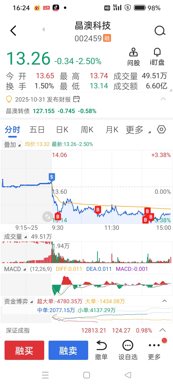 $晶澳科技(SZ002459)$ 完了,完了,松犬又出来了,我这T又白做了,开盘13是守不住了。