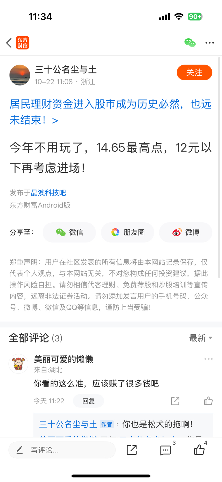 温馨提示: 1.根据《证券法》规定,禁止编造、传播虚假信息或者误导性信息,扰乱证券市场;2.用户在本社区发表的所有资料、言论等仅代表个人观点,与本网站立场无关,不对您构成任何投资建议。用户应基于自己的独立判断,自行决定证券投资并承担相应风险。《东方财富社区管理规定》