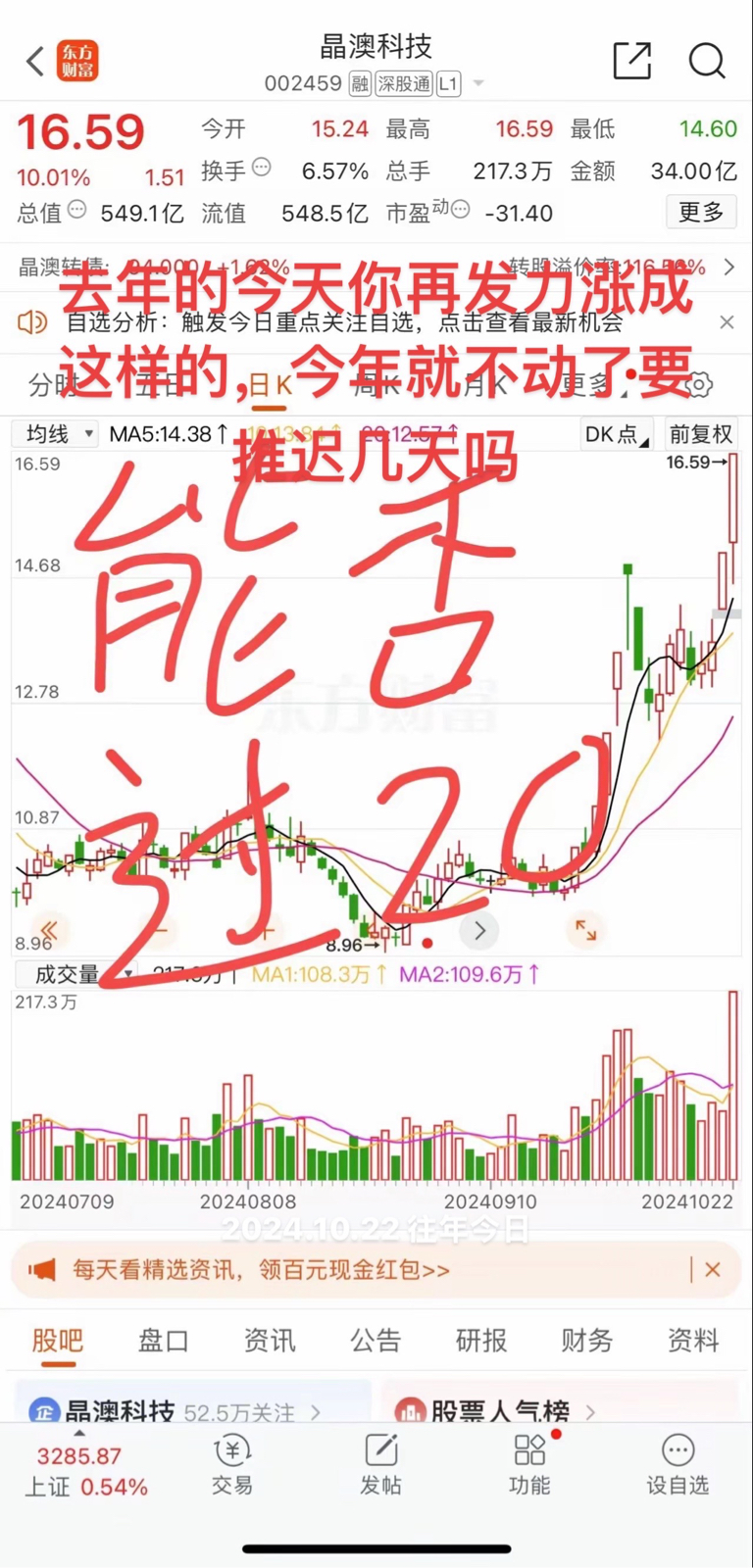 $晶澳科技(SZ002459)$ 去年的今天这样的走势、今年不知道怎么的不反弹
