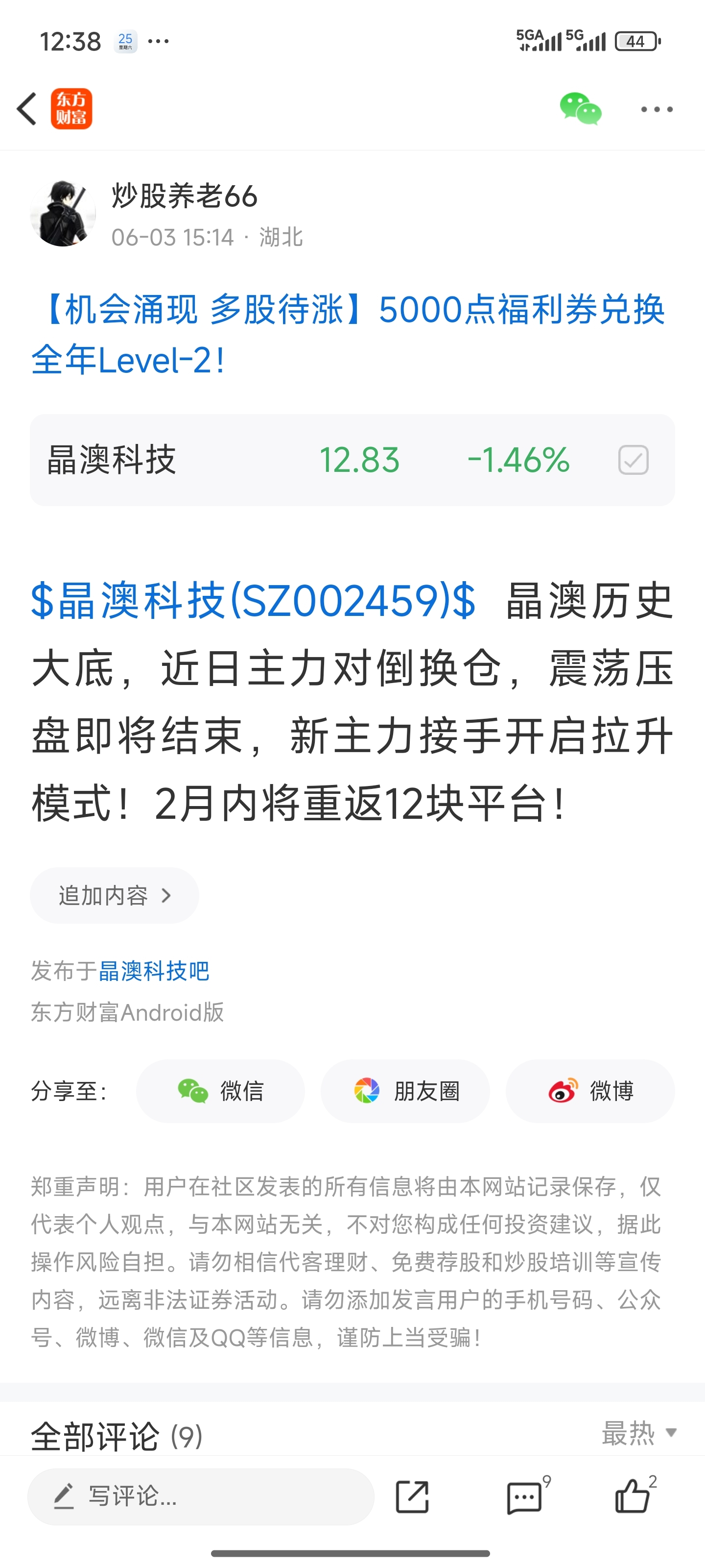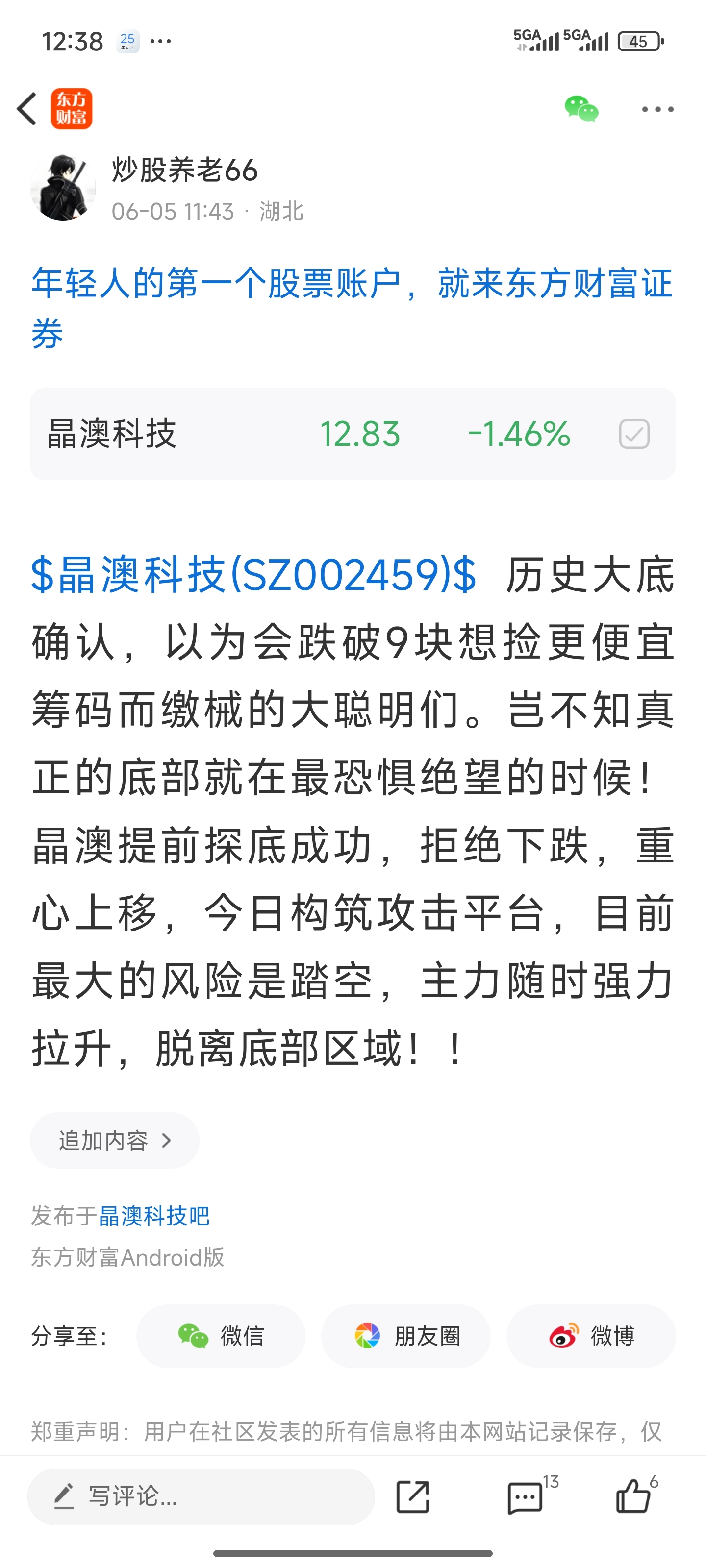 温馨提示: 1.根据《证券法》规定,禁止编造、传播虚假信息或者误导性信息,扰乱证券市场;2.用户在本社区发表的所有资料、言论等仅代表个人观点,与本网站立场无关,不对您构成任何投资建议。用户应基于自己的独立判断,自行决定证券投资并承担相应风险。《东方财富社区管理规定》