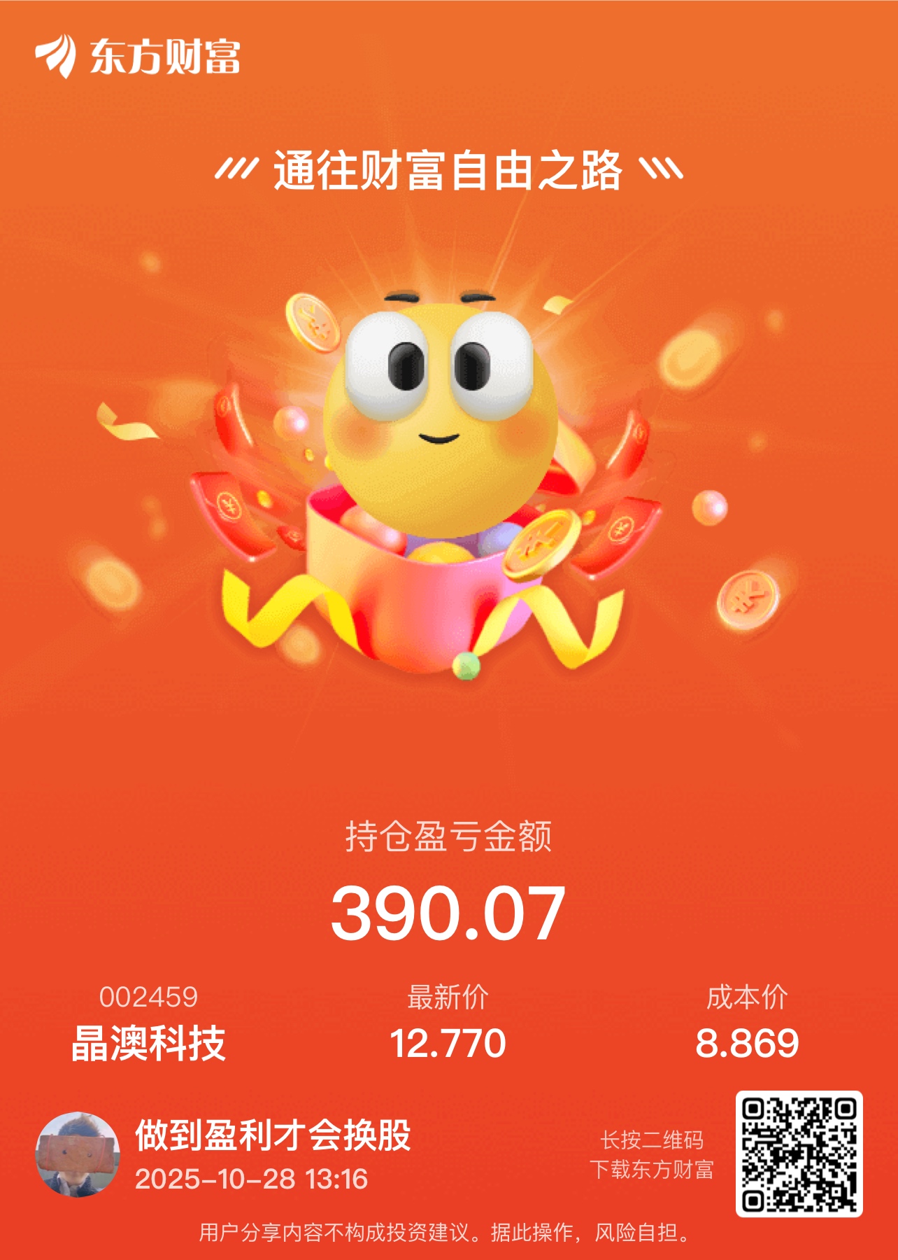 $晶澳科技(SZ002459)$ 留了一手,只赚390块钱,白玩了一周……