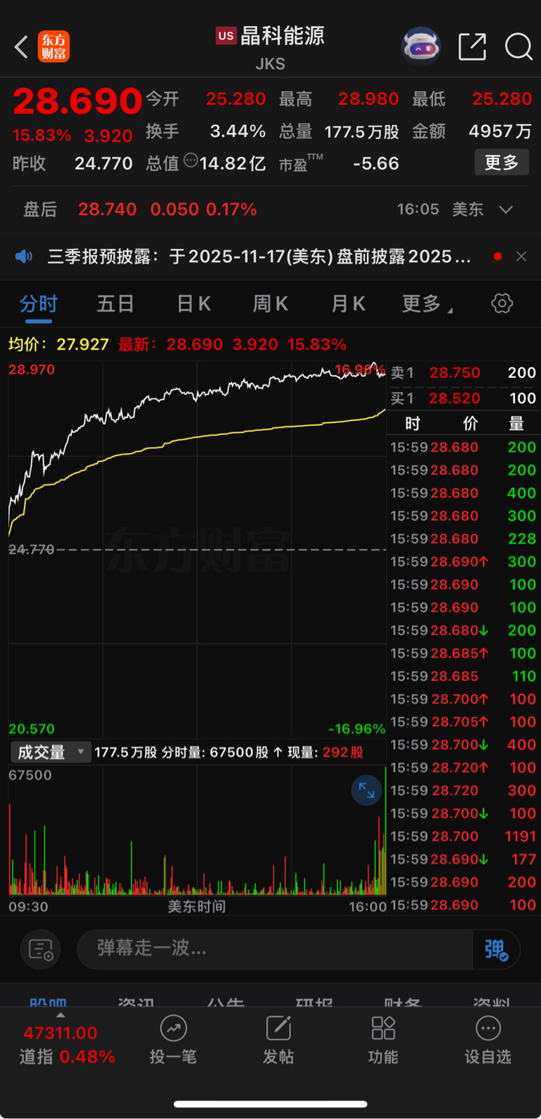 美股晶科能源暴涨超越阿特斯,晶澳科技今天也不会差!晶澳科技和晶科能源业务高度相似