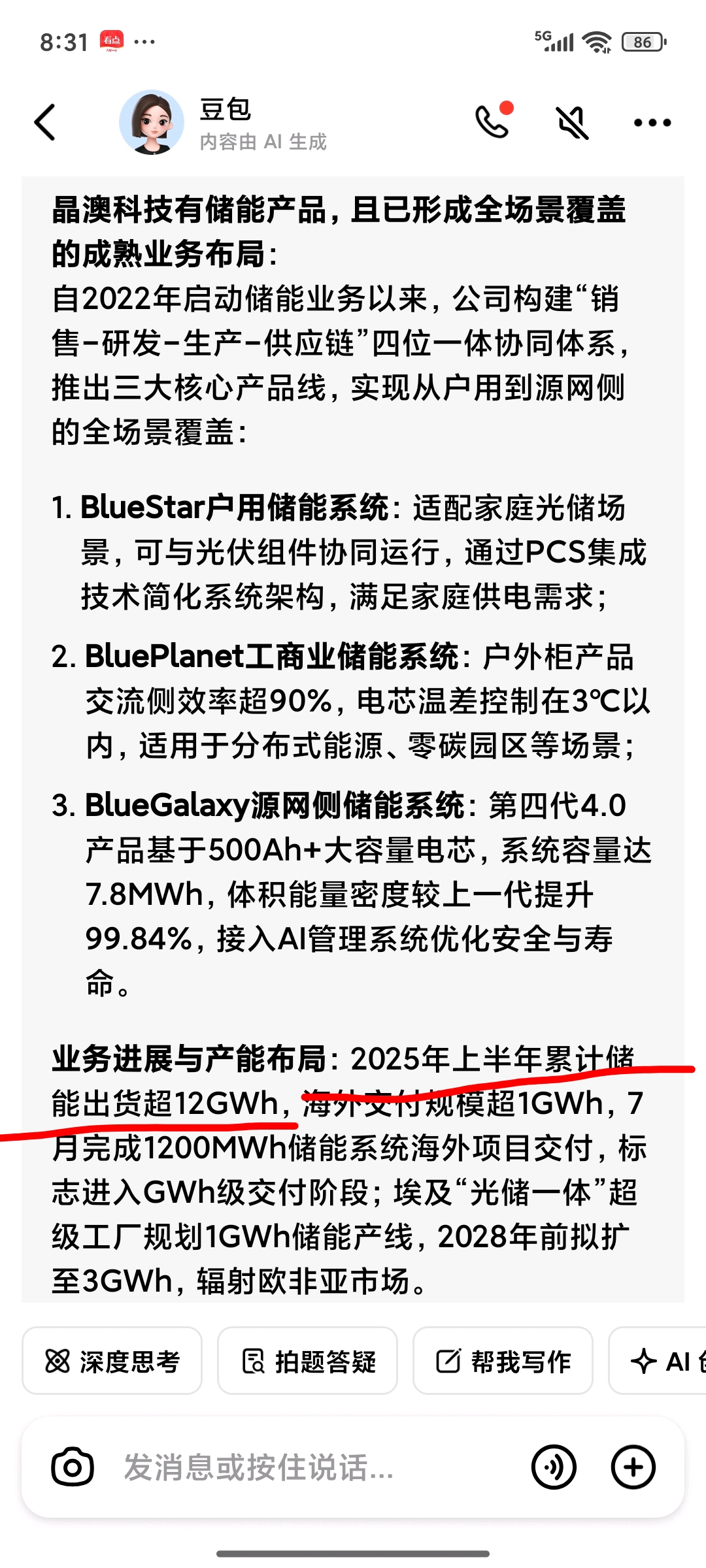 晶澳科技的储能产品出货量有点小啊,靳军辉加加油吧。
