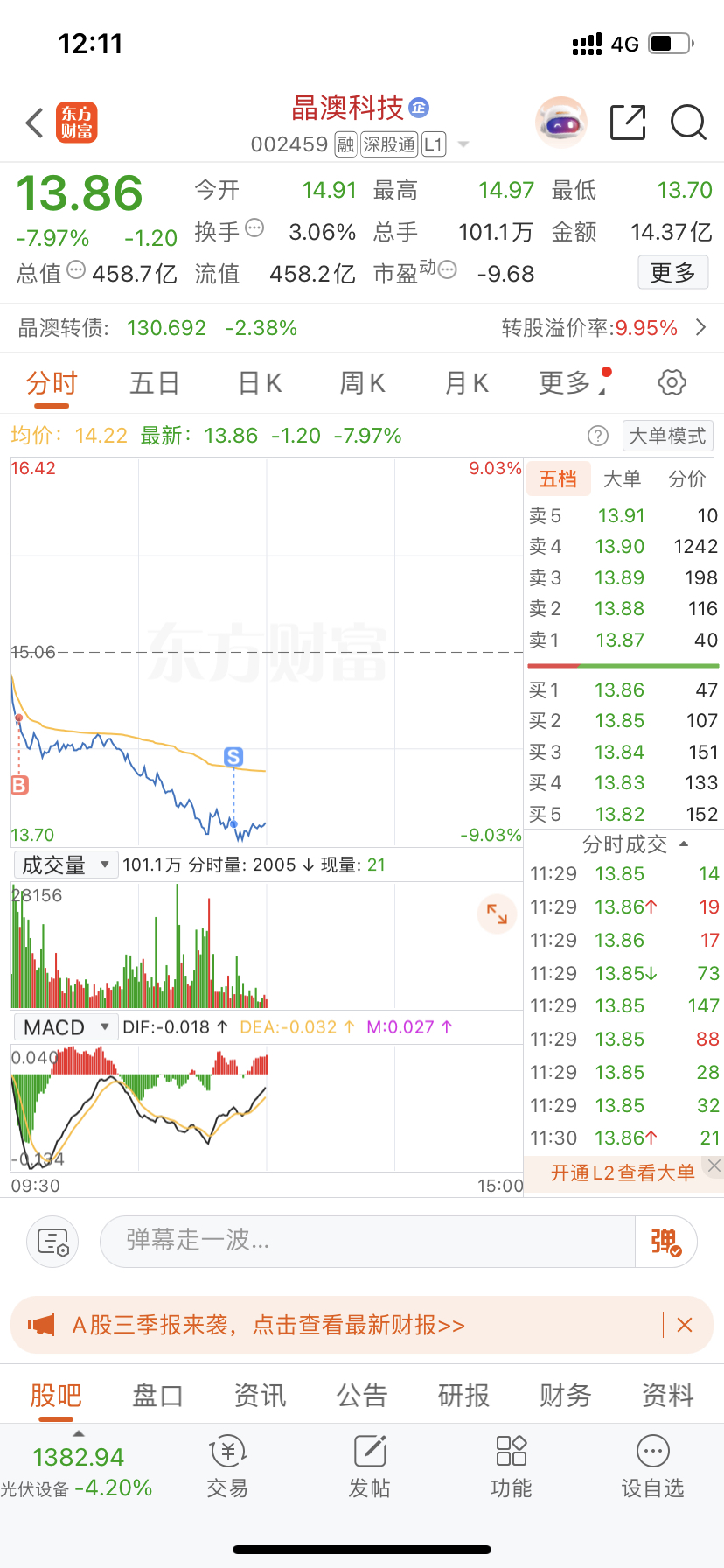 $晶澳科技(SZ002459)$ 这个拉几玩不了,每次玩这个票都亏,明天清仓了,还是去玩科技票吧!
