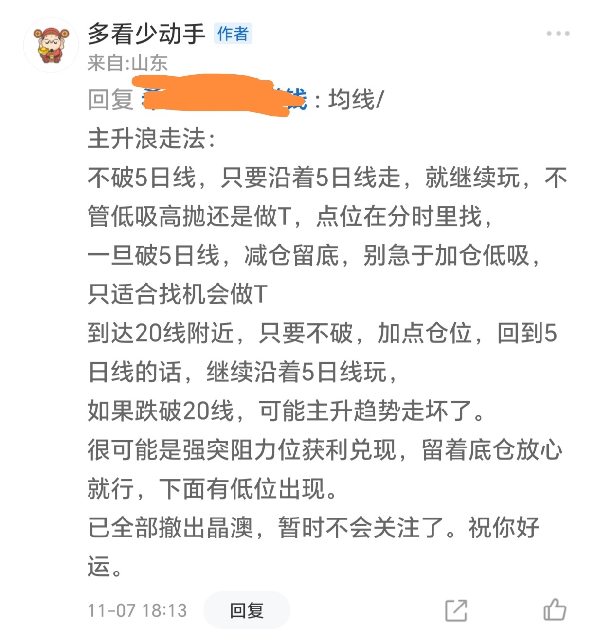看不懂时候就别乱动,老实实待着。止盈止损已经过最佳时期,割肉也没必要了,就算你割