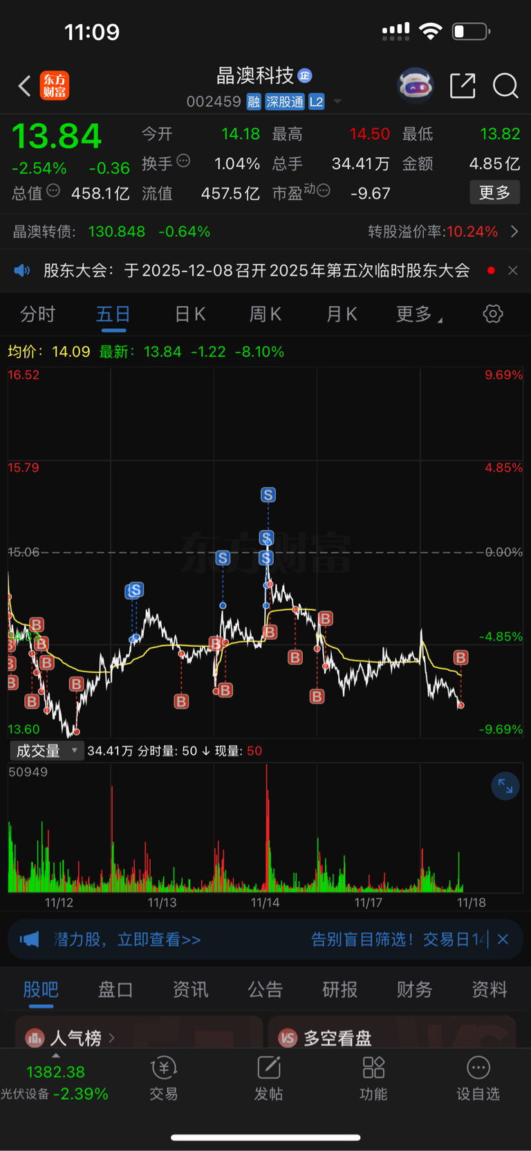 $晶澳科技(SZ002459)$ 两天开盘都挂的高,没卖出去,步子迈大了真容易扯着蛋