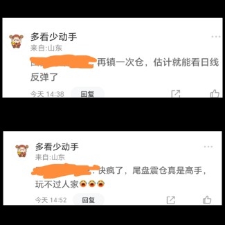 自认为个人耐心和承压能力还算比较稳定,但今日确实承压过大,之后不再进行瞎猜了。最后说一下:尾盘震仓,很难短时间去判断是震仓还是真实下跌,对心里冲击力太大。如果今日有跟贴买入,一定一定先看好止损,才能再看盈利,只能先看反弹,至于反弹力度自行判断吧,不能瞎猜了,承压太大了。