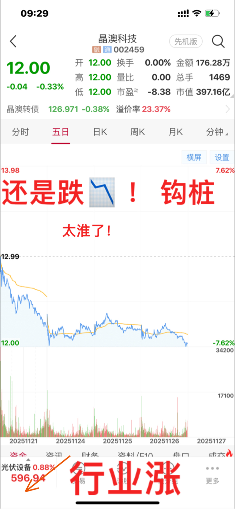 $晶澳科技(SZ002459)$ 看图说话 看行业都红 就他绿!哈哈 前无古人 后无来者!牛 钩桩