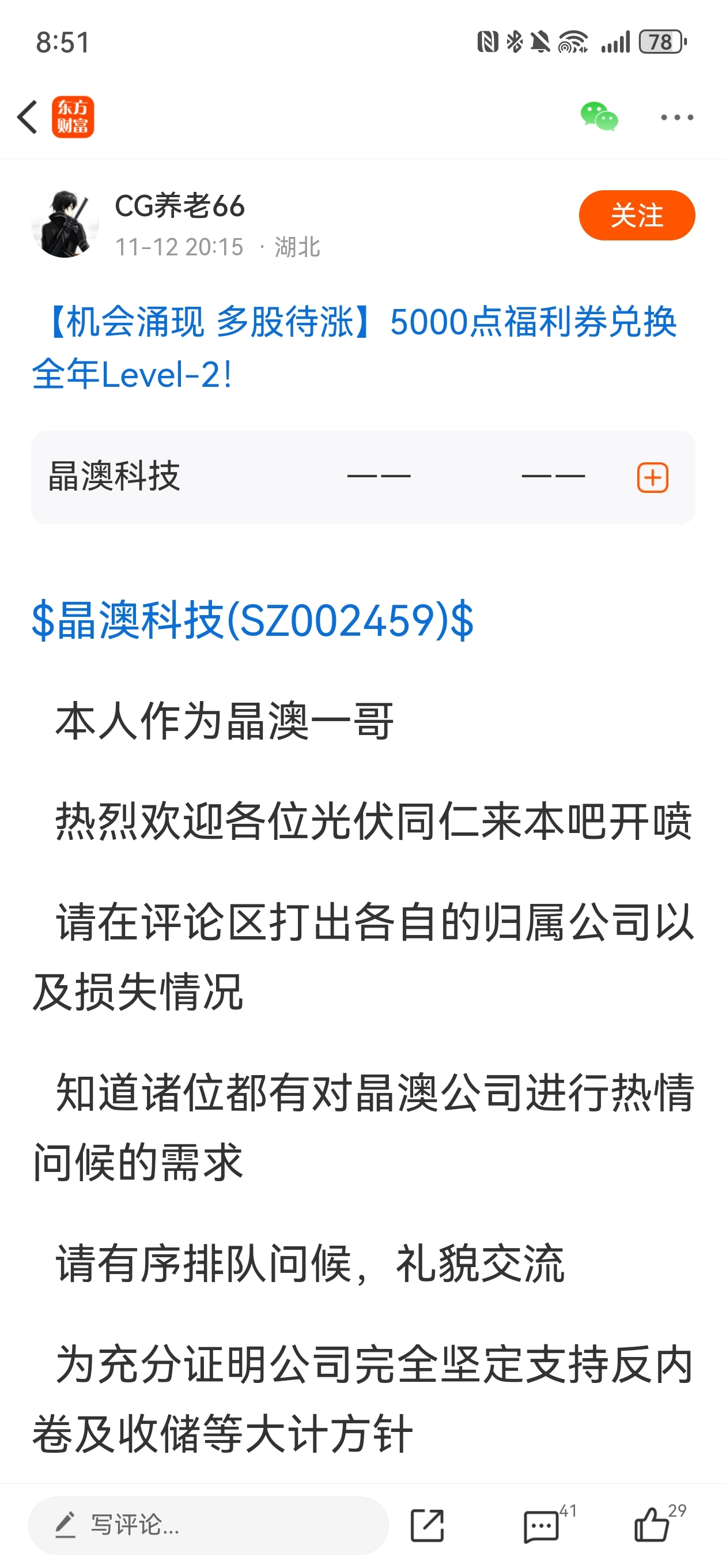 温馨提示: 1.根据《证券法》规定,禁止编造、传播虚假信息或者误导性信息,扰乱证券市场;2.用户在本社区发表的所有资料、言论等仅代表个人观点,与本网站立场无关,不对您构成任何投资建议。用户应基于自己的独立判断,自行决定证券投资并承担相应风险。《东方财富社区管理规定》