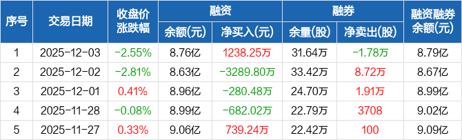晶澳科技:融资净买入1238.25万元,融资余额8.76亿元(12-03)