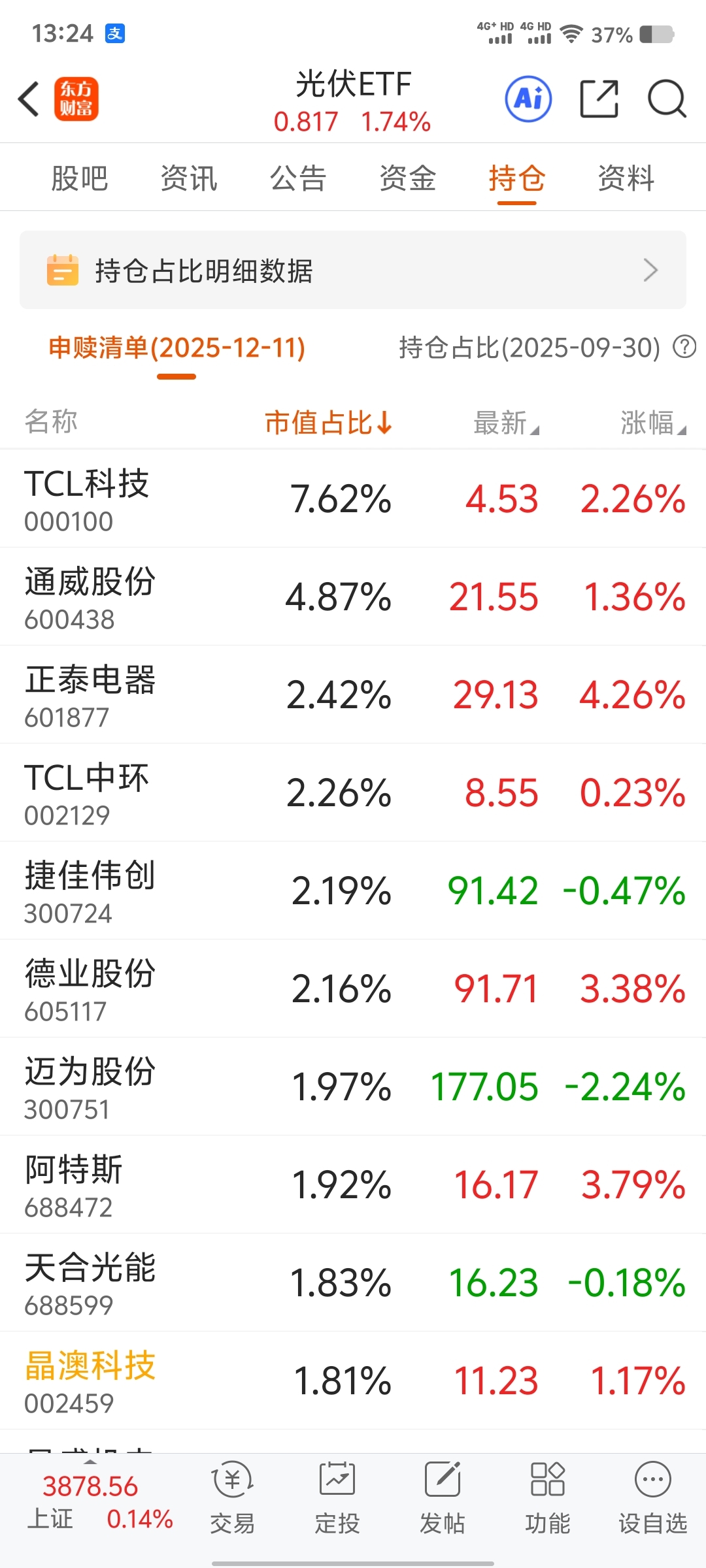 $晶澳科技(SZ002459)$ 持仓占比一直在下降!