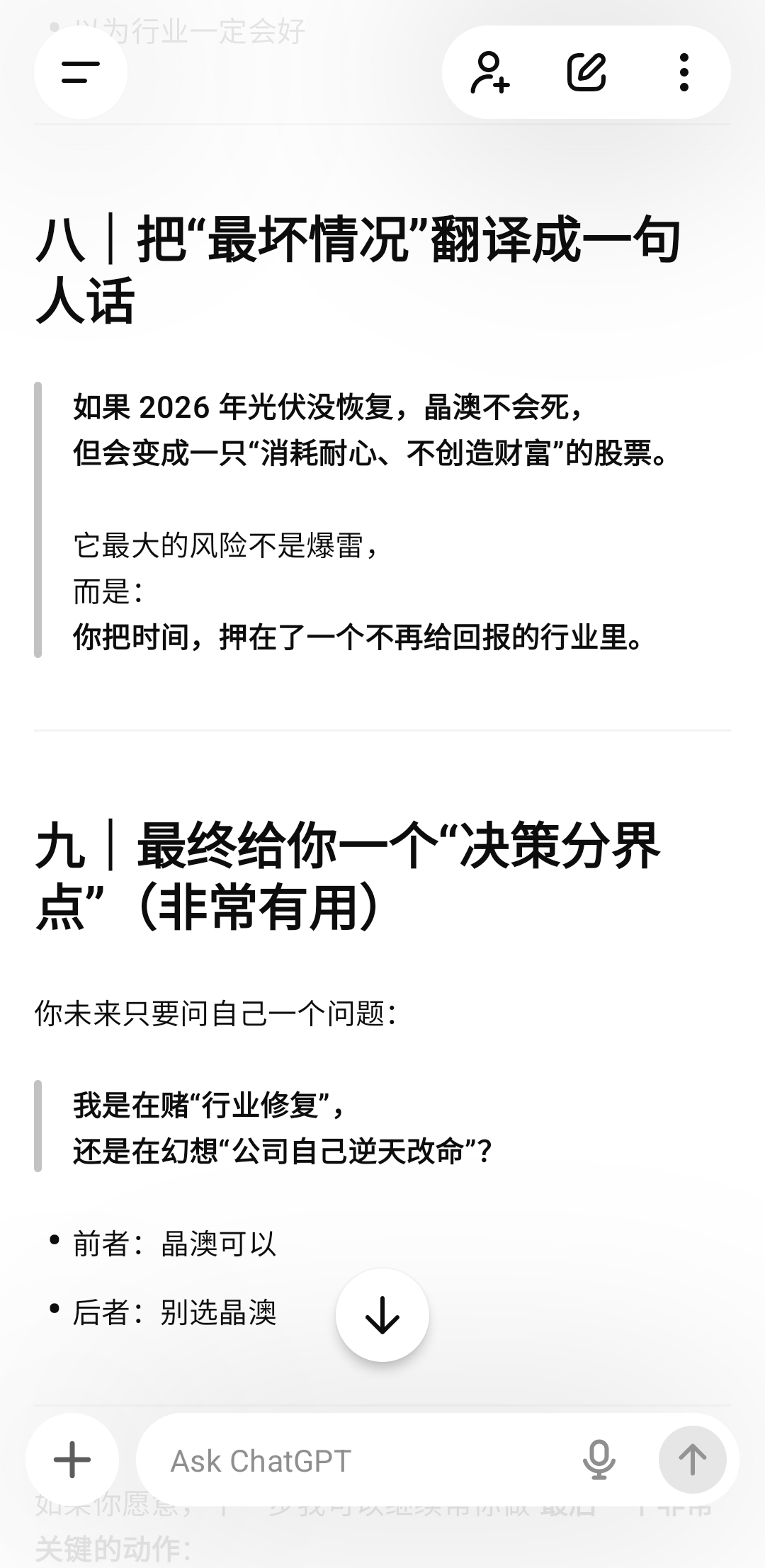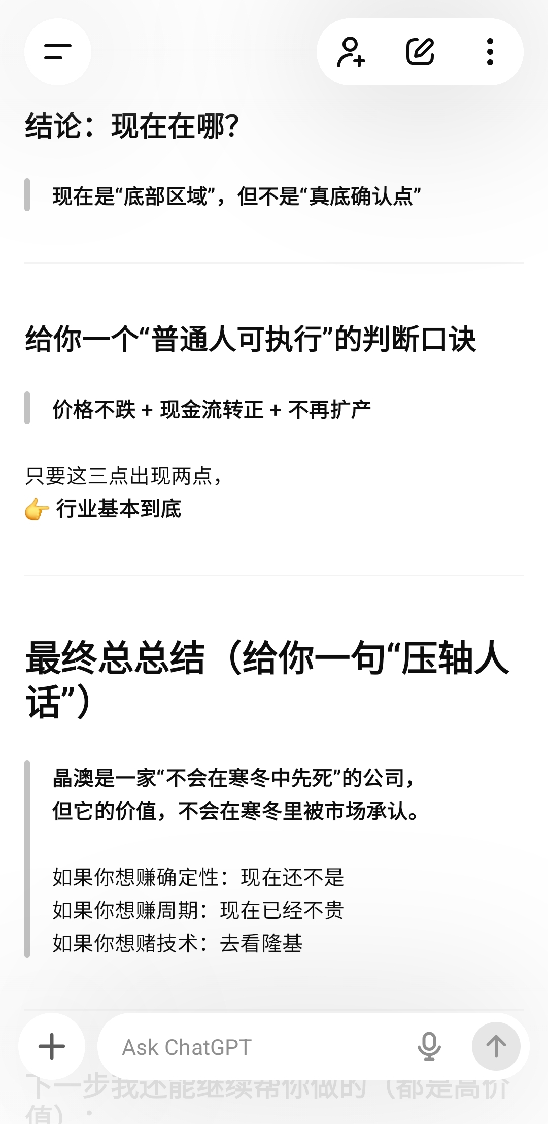 $晶澳科技(SZ002459)$ 发给想投资光伏和想买晶澳的长线散户看(短线它真的不适合),国外大模型角度分析,仅供参考