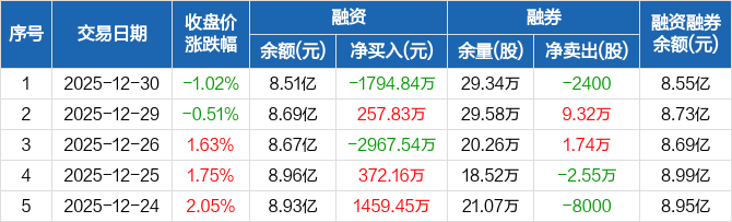 晶澳科技:融资净偿还1794.84万元,融资余额8.51亿元(12-30)