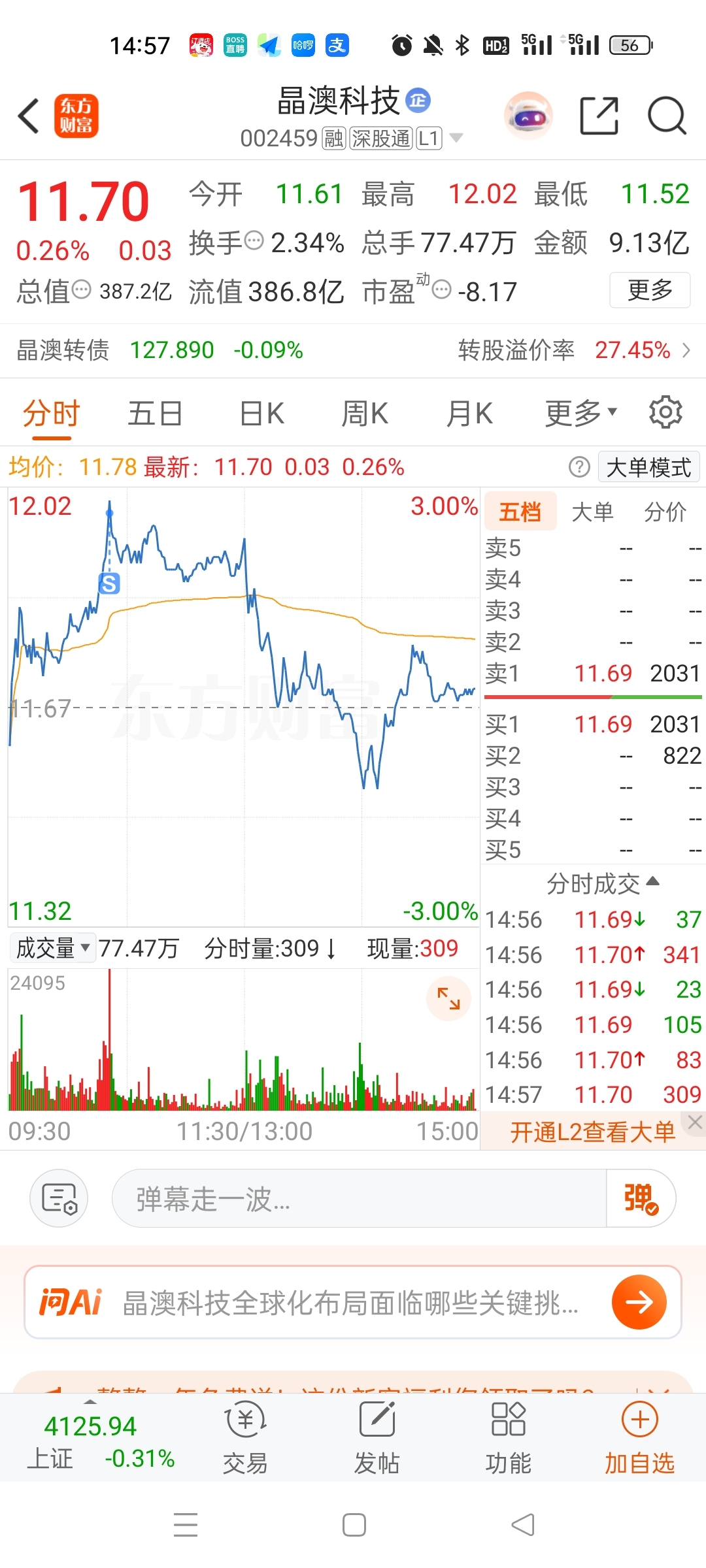 $晶澳科技(SZ002459)$ 还好早上跑的快呀