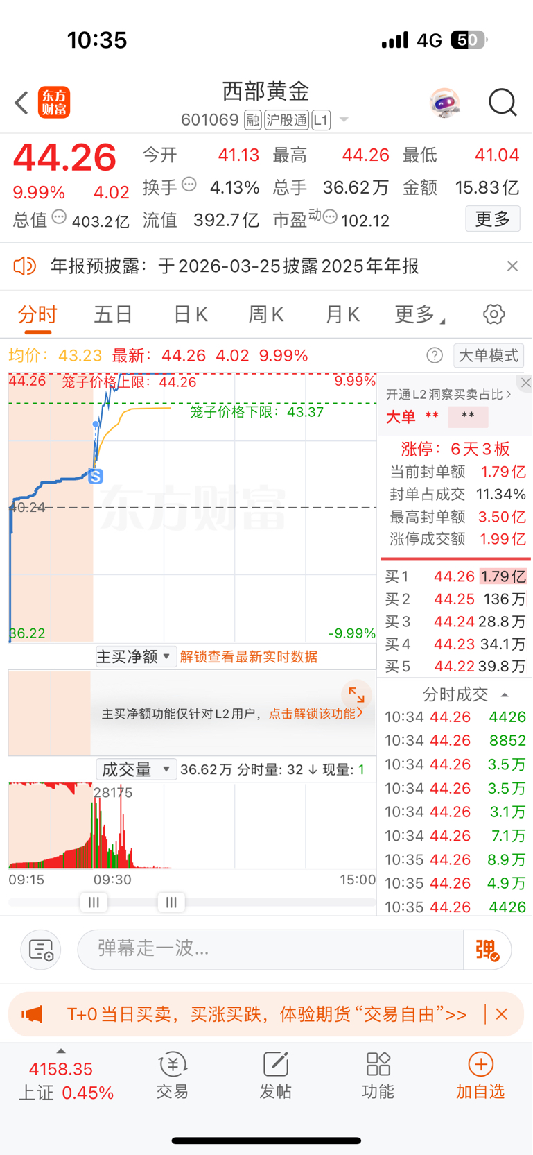 晶澳科技还是太拉了,昨天37.5买的西部黄金,还套了一点点利,虽然涨停了,但也不
