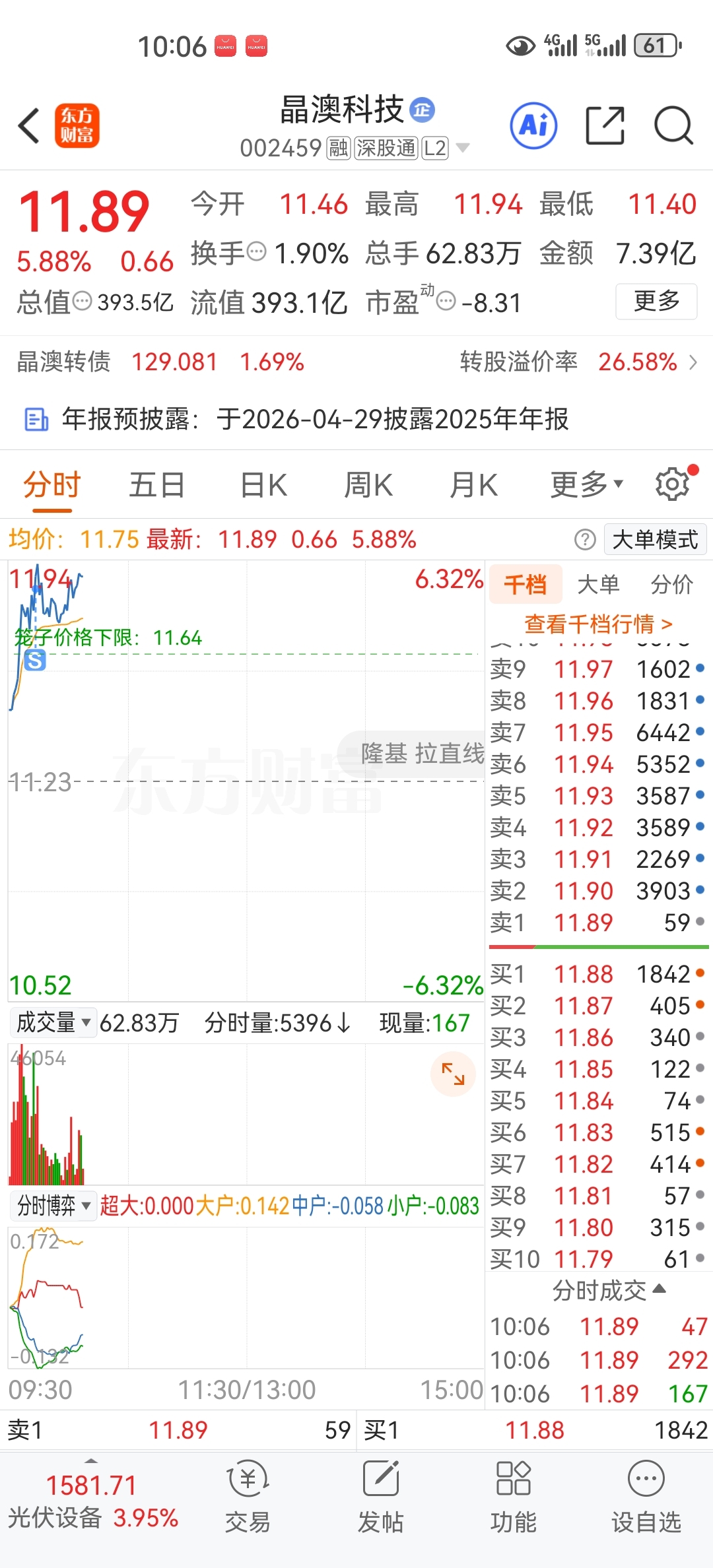 $晶澳科技(SZ002459)$ 我没格局了,我11.80卖飞了,