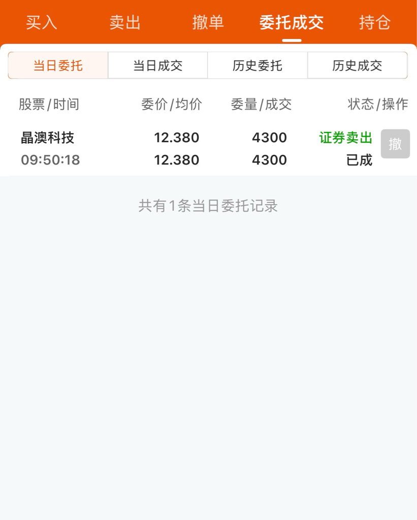 12.38出了半仓,剩下的半仓说啥不动了,吸取上次的教训,今年的收益全部是晶澳给