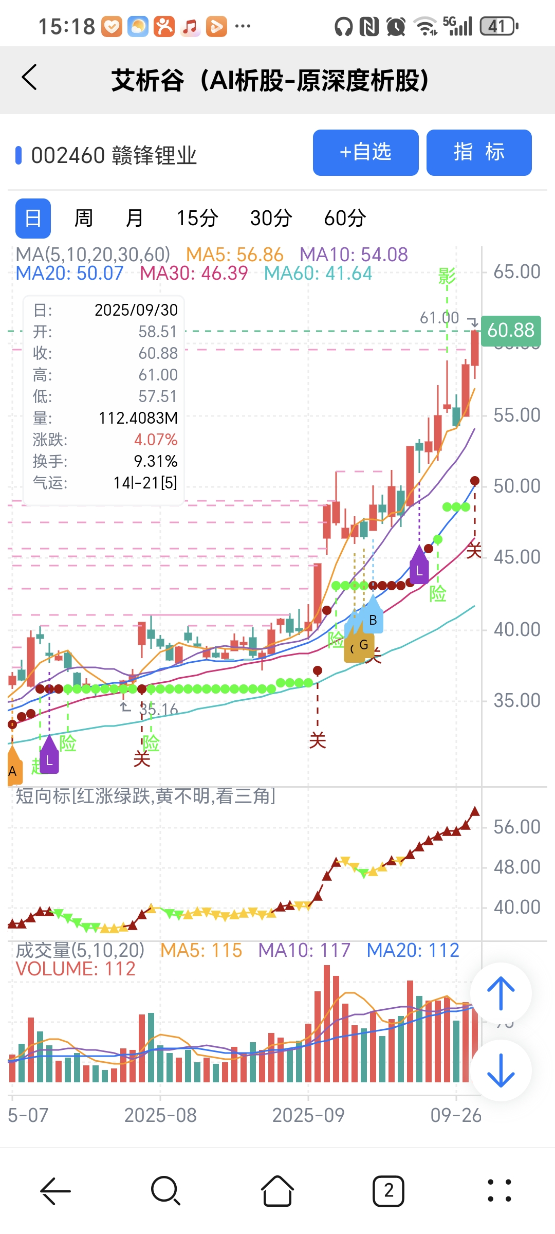 图中A、B、G、L 关注标记是对应AI选股模型当天下午2点多给出。