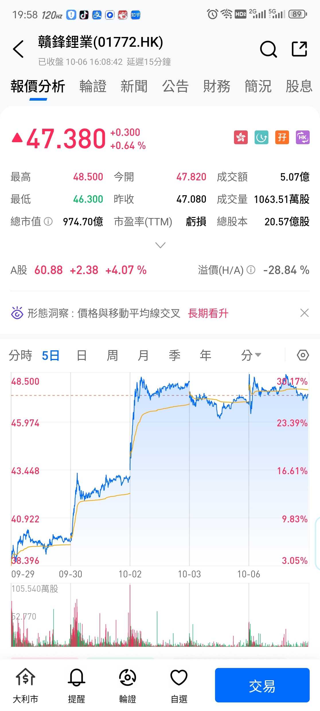 $赣锋锂业(SZ002460)$ 港股趁着a股休息涨了 ,a股开盘还会起来不