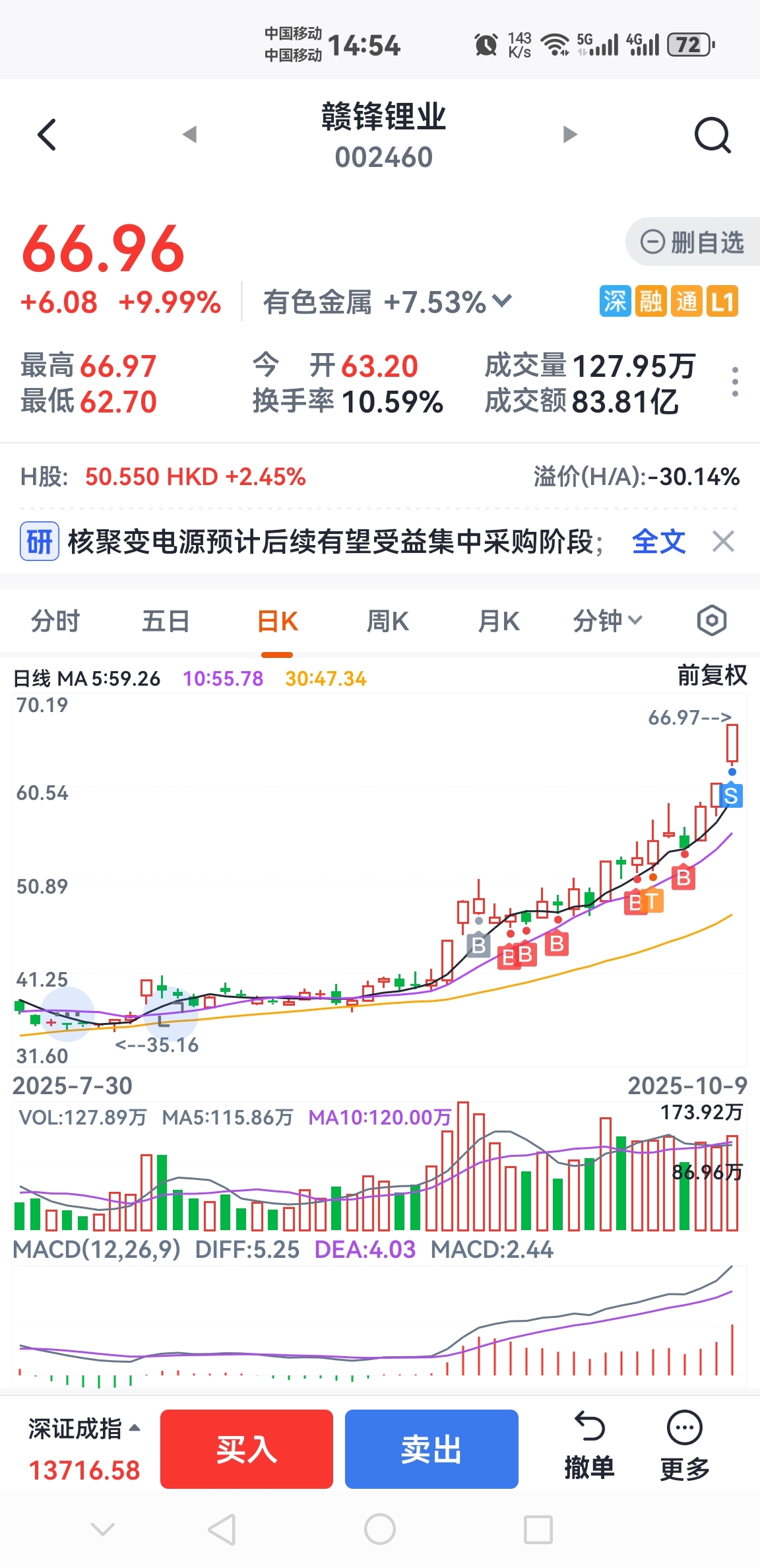 $赣锋锂业(SZ002460)$ 今天内心好纠结,最终还是没能坚持,太恐高了,先出来观望一下,看看还有没有机会再回来,先祝留下的兄弟们发财