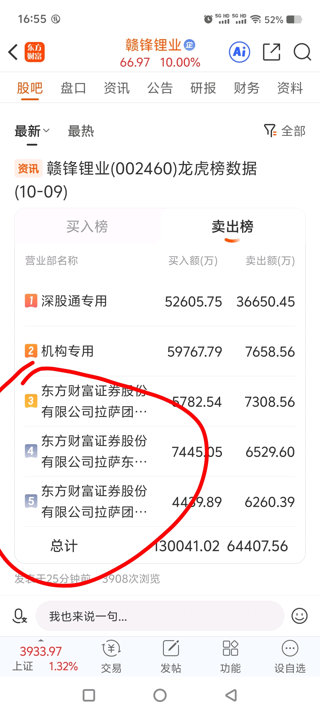 $赣锋锂业(SZ002460)$ 卧槽,明天起飞了,卖出的竟然全是家人,机构大幅买进