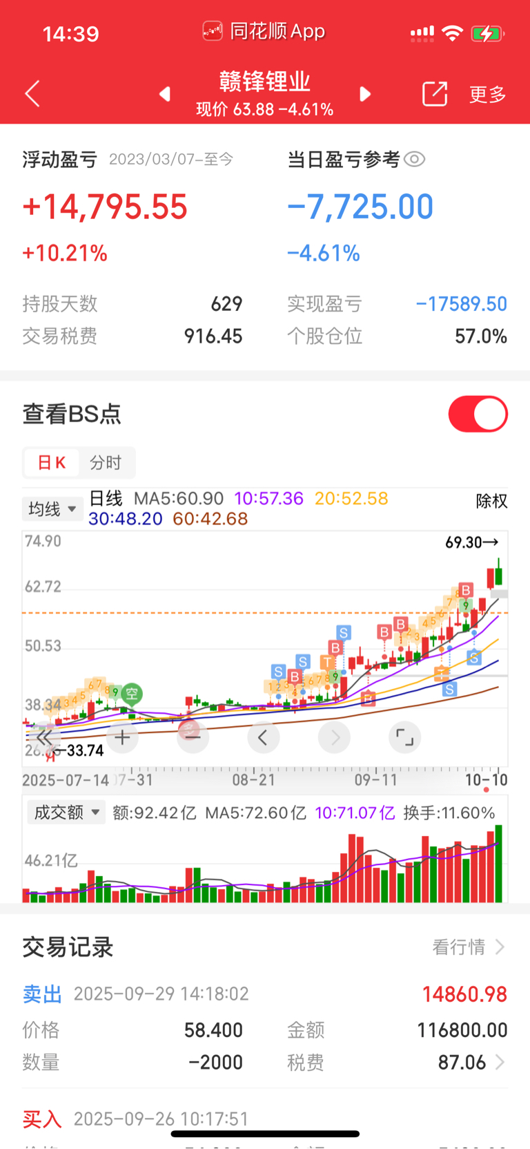 $赣锋锂业(SZ002460)$ 好了,贪心了,今天亏了8000