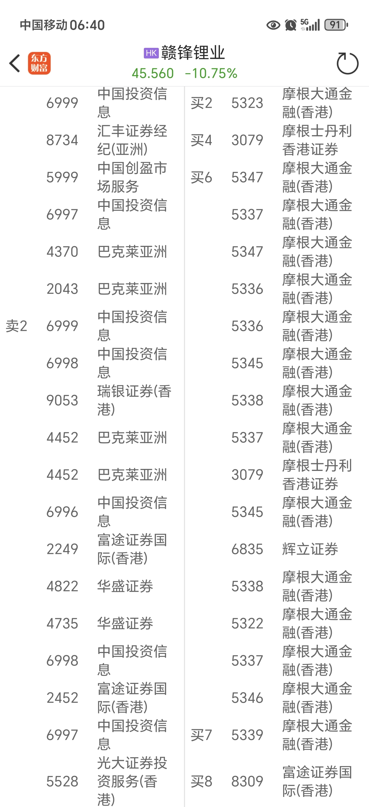 $赣锋锂业(SZ002460)$ 疯涨的时候摩根砸盘,大跌的时候疯狂砸钱,这就是格局,人赚不到认知以外的钱,星期一尾盘我跟着摩根在格局一把