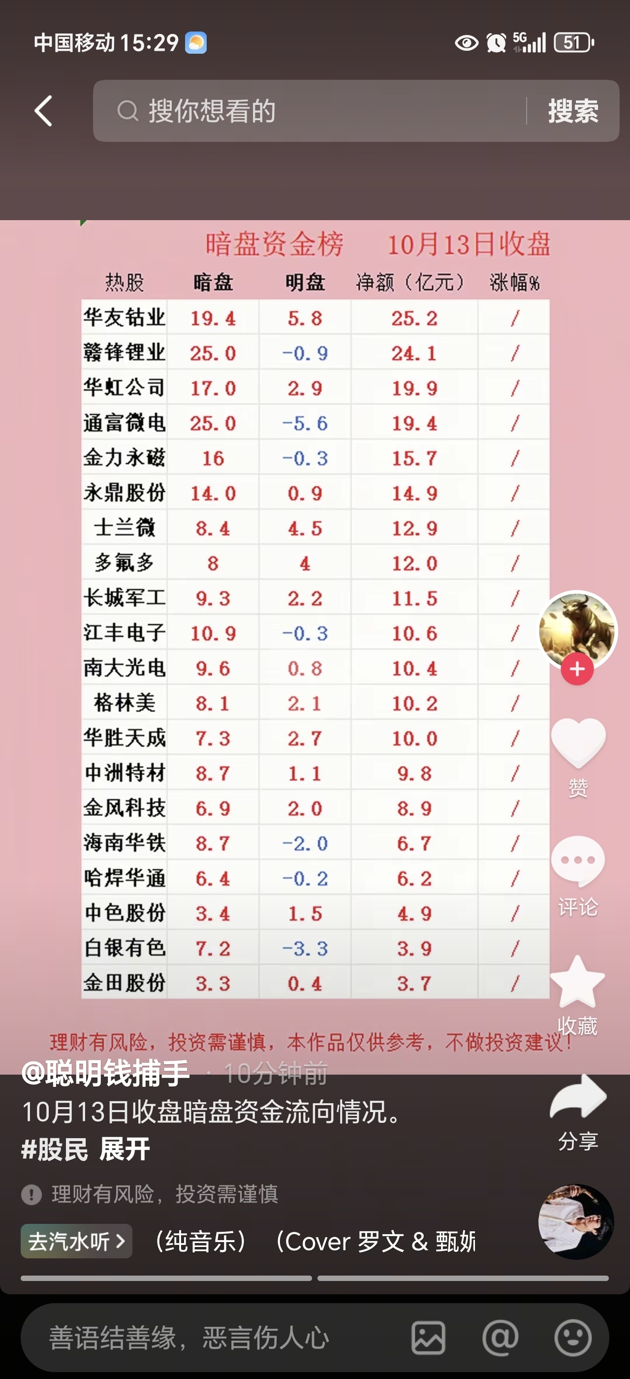 $赣锋锂业(SZ002460)$ 赣锋主力现在不做人事了,明盘不玩,玩暗盘,赣锋主力很阴,兄弟们下次不要看明盘主力资金了