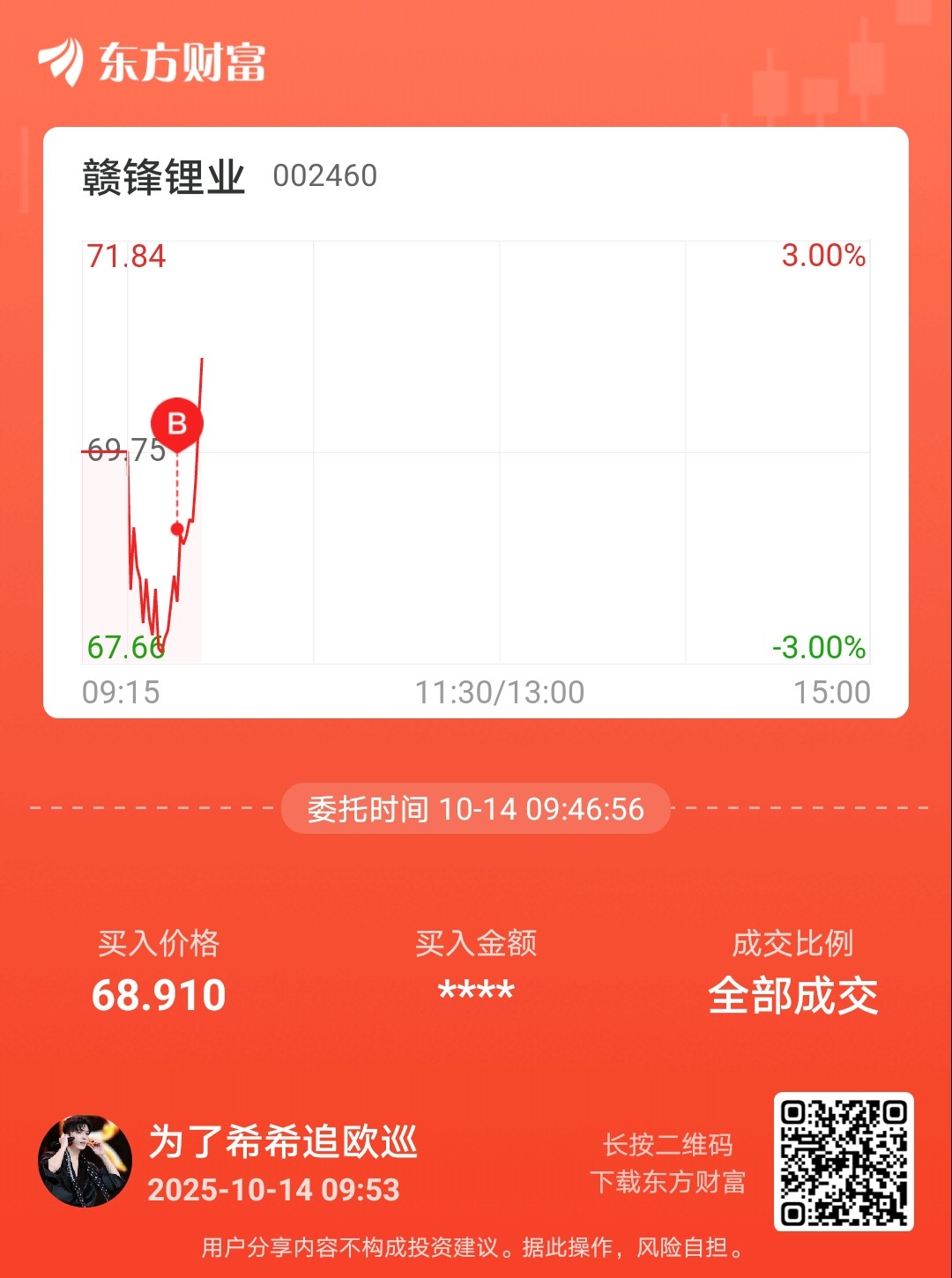 温馨提示: 1.根据《证券法》规定,禁止编造、传播虚假信息或者误导性信息,扰乱证券市场;2.用户在本社区发表的所有资料、言论等仅代表个人观点,与本网站立场无关,不对您构成任何投资建议。用户应基于自己的独立判断,自行决定证券投资并承担相应风险。《东方财富社区管理规定》