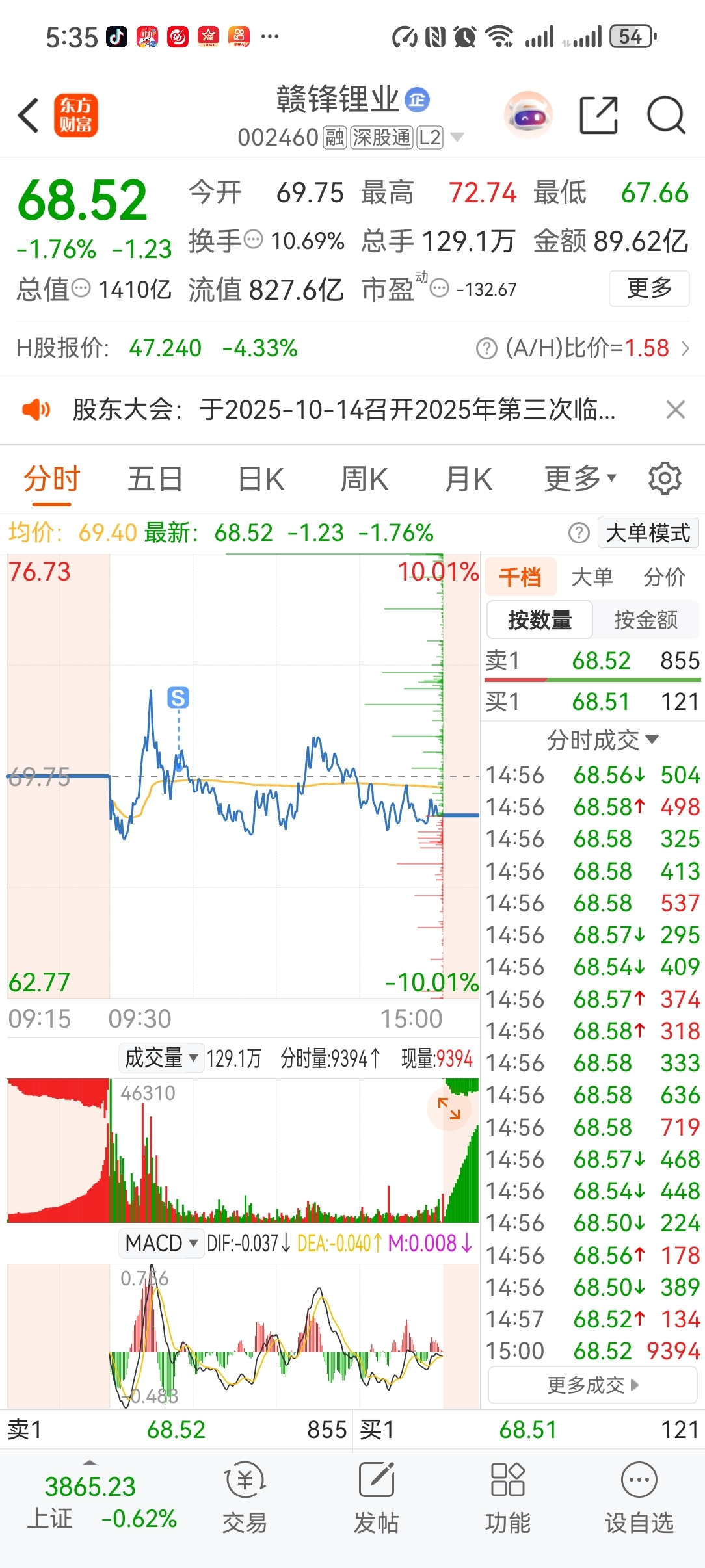 $赣锋锂业(SZ002460)$ 昨天的利润吐出来了,保本出局,留下的发财