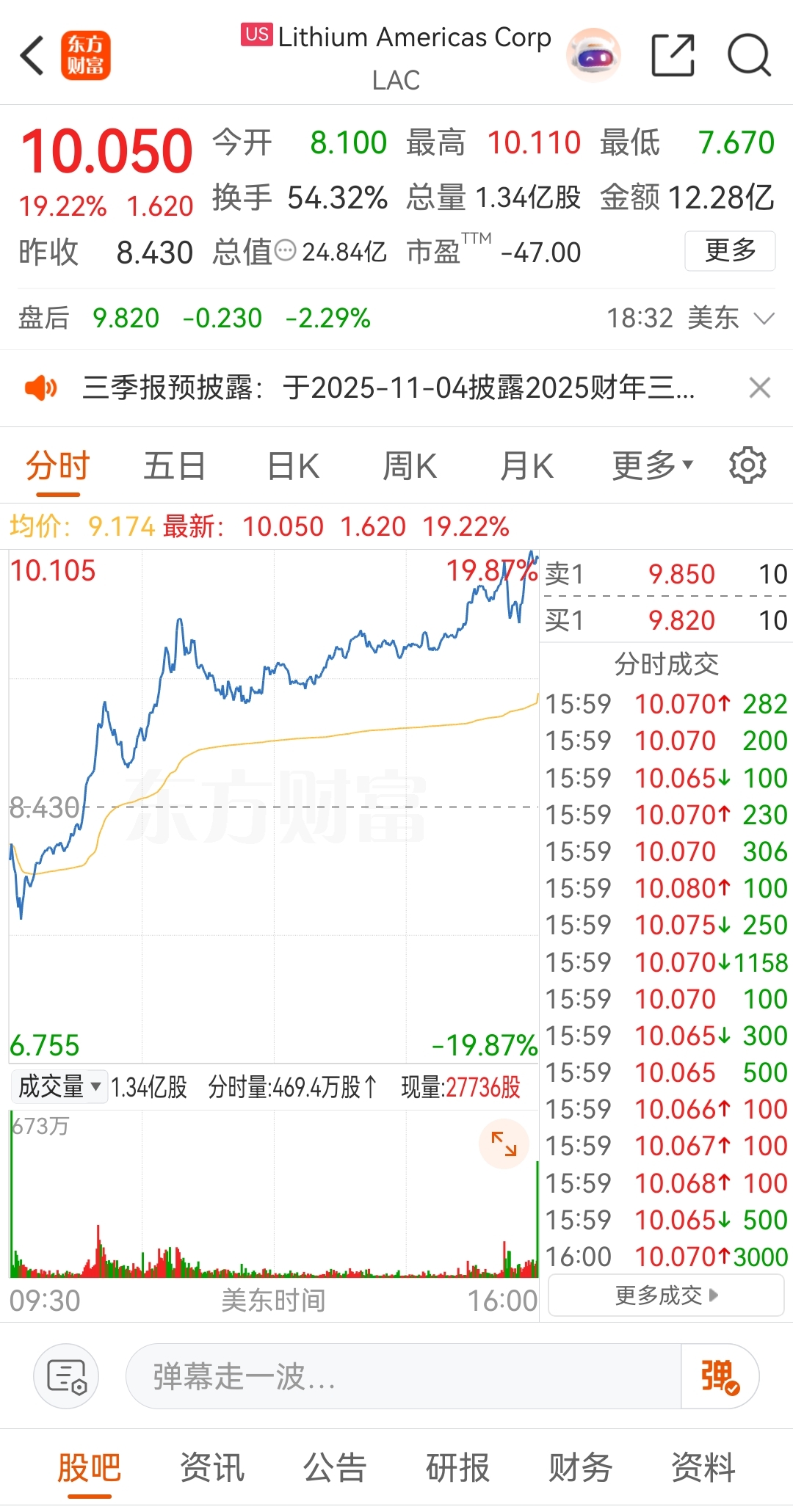 美洲锂业逆势大涨,大破前高。赣锋锂业赚麻了。今天稳了。