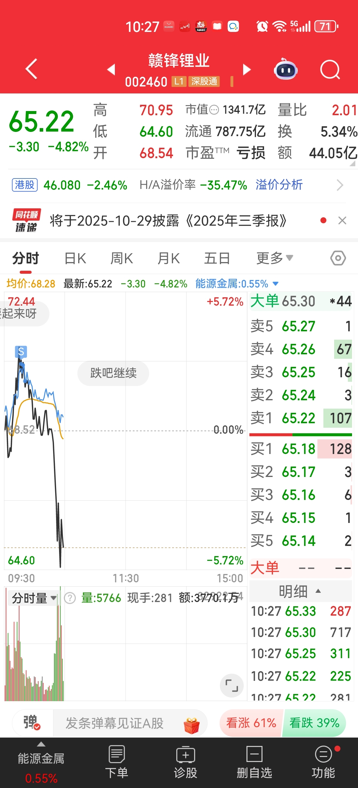 $赣锋锂业(SZ002460)$ 幸好早上冲高跑得快